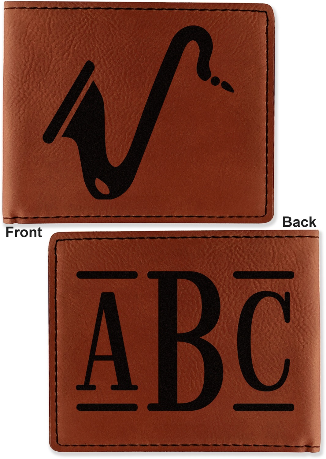 Your bifold wallet will be personalized by laser engraving, which will be a black color on the wallet. Choose a graphic, text, or monogram to personalize your wallet. There are thousands of choices in our design center.