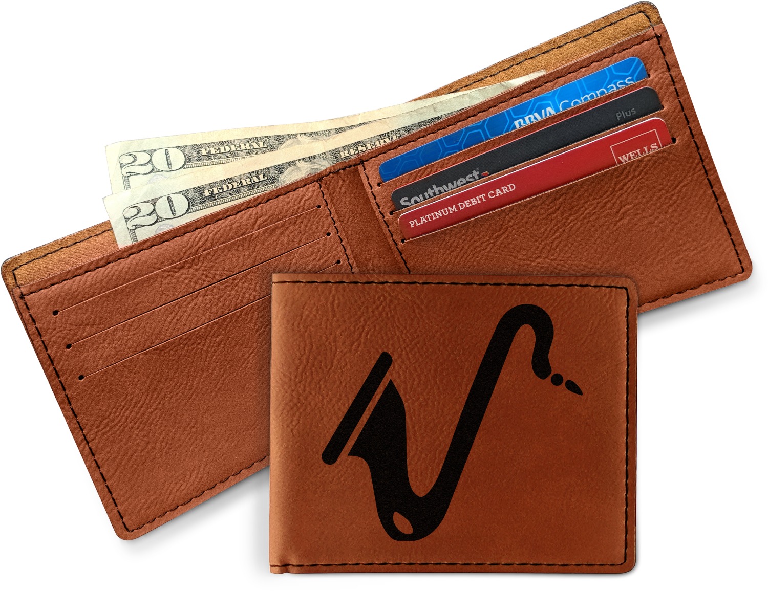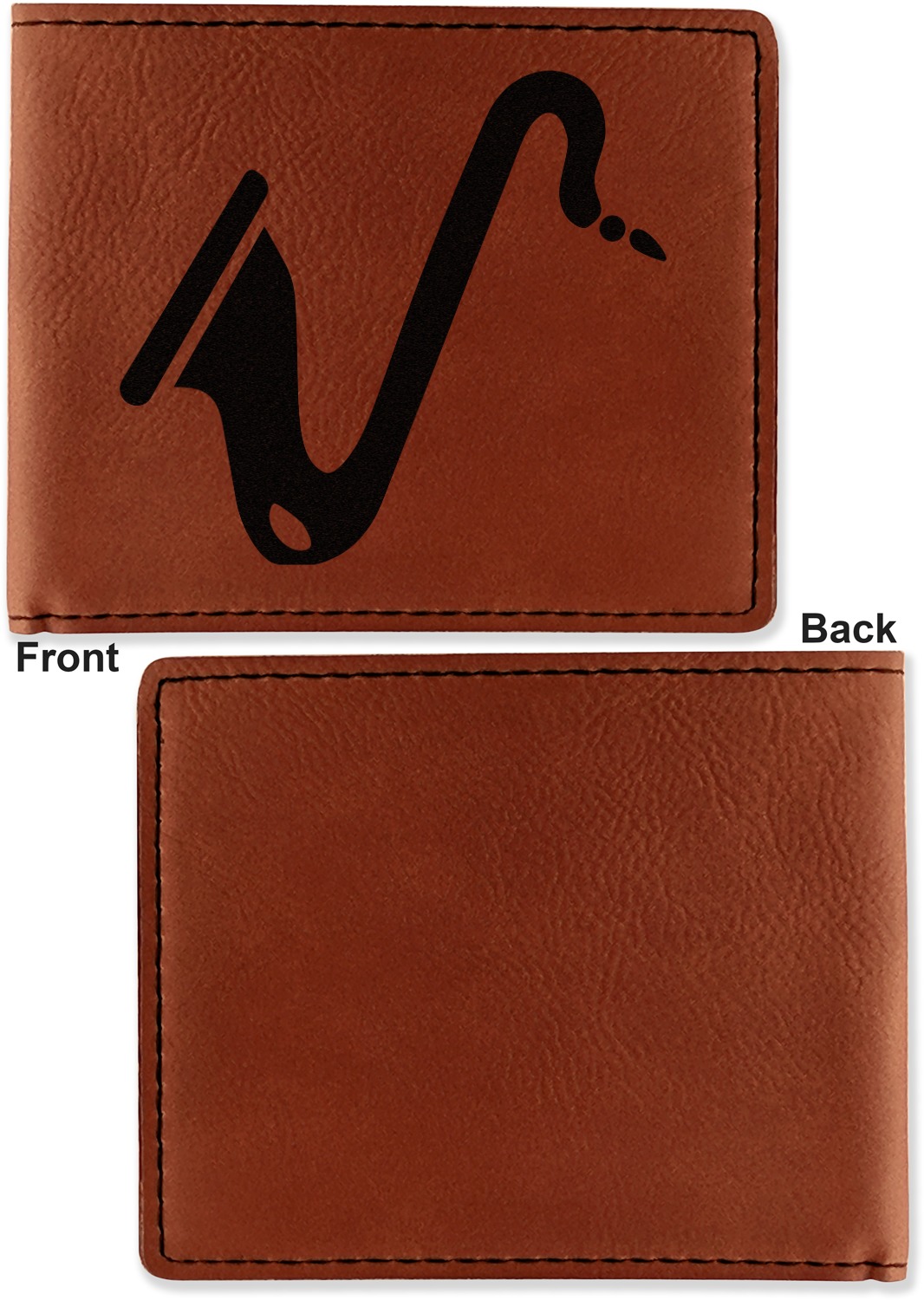 Your bifold wallet will be personalized by laser engraving, which will be a black color on the wallet. Choose a graphic, text, or monogram to personalize your wallet. There are thousands of choices in our design center.
