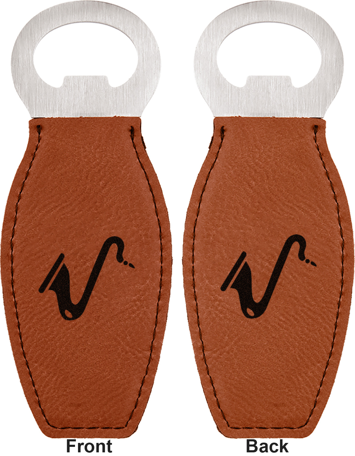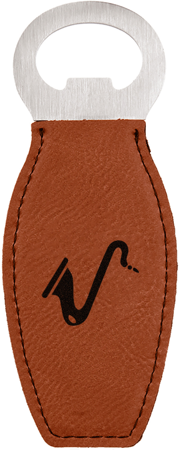 Built from stainless steel, these custom bottle openers are wrapped in a cognac-colored leatherette. Sharp, black stitching lines the edges for extra durability and a finished touch. Your personalization is laser-engraved onto the surface of this leatherette, leaving behind a crisp, black coloration. At 4.6 by 1.8 inches, this beer bottle opener gives you much of leverage when trying to open a stubborn bottle. On the opposite end of the opener, you'll find a magnet that you can use to display your new, unique bottle opener!