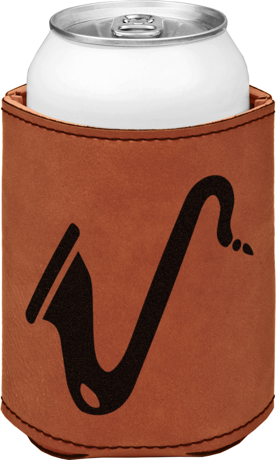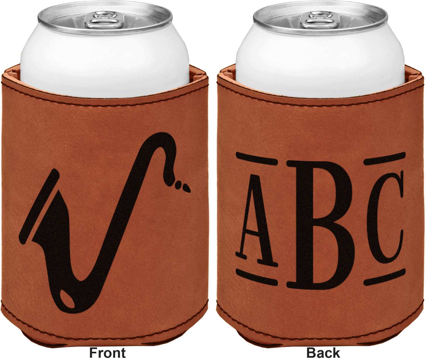 This can sleeve is made from a cognac-brown leatherette and stitched with a sturdy, black thread. A slim padding lines the inside of your can sleeve to allow for a better fit once your drink is inserted. The sleeve itself measures at 4 by 4.5 inches, allowing this custom can sleeve to accommodate most canned drinks. Your personalized design can be engraved on the front and back, or solely the front. When laser-engraved, your design appears as a black coloration which contrasts the leatherette nicely.