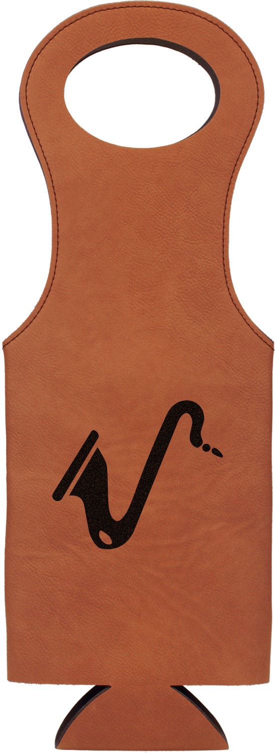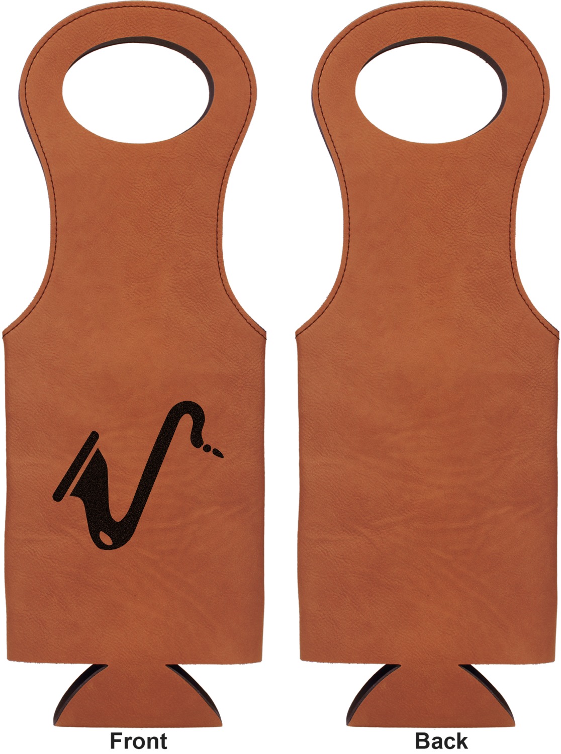 This wine carrier is made from a stunning leatherette, in a cognac-brown color. Strong, black stitching lines the sides of your wine bottle bag and provides extra durability. The interior is lined with a padded, black material to allow for a snug fit once your bottle is placed inside. At the top of this wine gift bag, you'll find two oval shaped handles that elegantly complements the rest of the bag's style. We provide you with the option of laser-engraving the front, or the front and back of your new personalized wine bag!