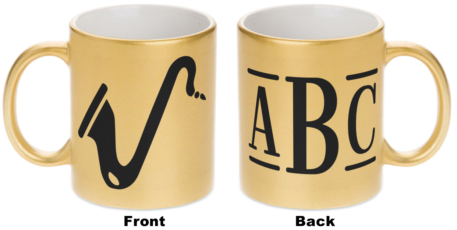 Our custom mugs are ceramic, which is great for keeping your tea or coffee warm! We offer two metallic mugs to personalize - Silver or Gold. Both styles hold around 11oz and have dimensions of approximately 3.75" x 3.5" x 4.75". Both the metallic mugs come in a matte finish and have glitter detailing to add a more pristine feel to the gold and silver base colors.