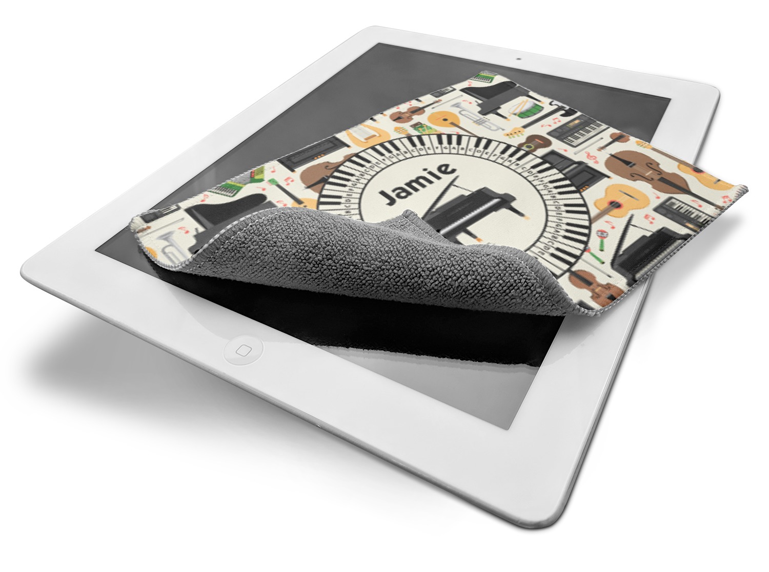The back of this cleaning cloth is made from a gentle, grey microfiber material, that is masterful at removing smudges, grease, and fingerprints from lenses or electronic screens. The front side of the screen cleaner displays your personalized design in vibrant color. A beautiful stitch lines the edges and secures the microfiber to the polyester top. We provide you with the option of customizing this screen horizontally or vertically, depending on your preferences.