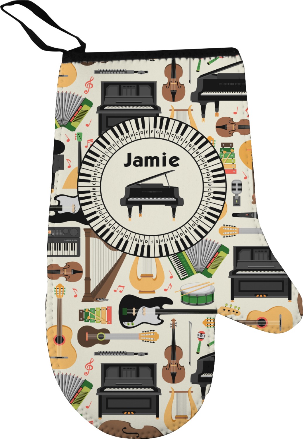 Our oven mitt gloves are made from a durable neoprene and feature a textured, rubberized surface on the palm's side for an easy grip. A strong stitch connects the neoprene and rubber, increasing the durability of this mitt. These oven gloves are spacious, and can accommodate both small and large hands. A thin, black loop is attached to the mitt's top, which can be used to hang and store the mitt. Your customization is displayed across the entire front of the neoprene surface. We sell both left and right hand models of these, separately.