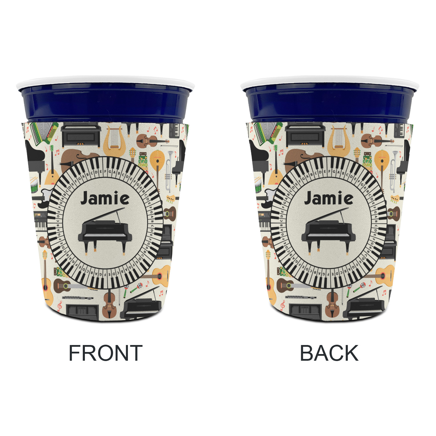 Made from neoprene with a polyester outer fabric and sewn seams, these premium quality party cup sleeves are very durable and will hold up to heavy use. They are available in 2 styles - with a bottom or just a sleeve to go around the outside of the tapered cup. The sleeve covers are about 4" tall and cover about 90% of the classic 16 oz. Solo cup.