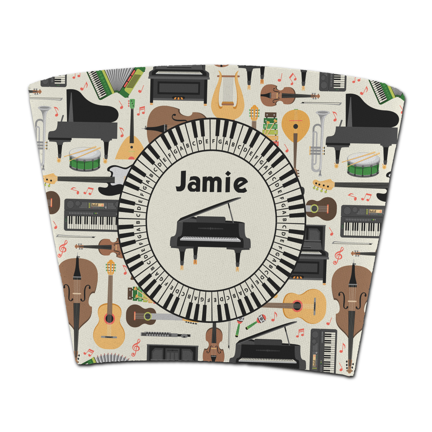 The background in the design is part of a set of music backgrounds - so it can easily be swapped out for a different background. We have a number of other musical frames / labels that you can also choose from. For the center graphic, all the musical instruments are in our system, so you can easily switch out the instrument.