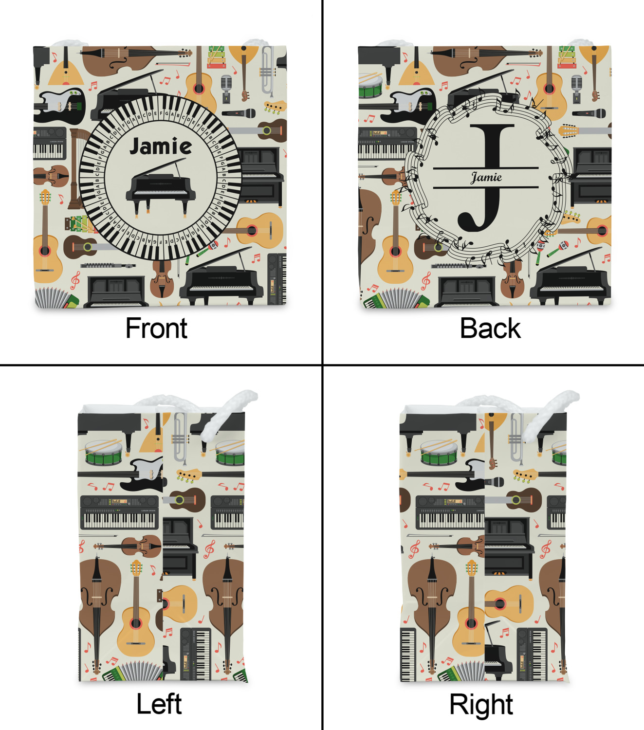 The background in the design is part of a set of music backgrounds - so it can easily be swapped out for a different background. We have a number of other musical frames / labels that you can also choose from. For the center graphic, all the musical instruments are in our system, so you can easily switch out the instrument.