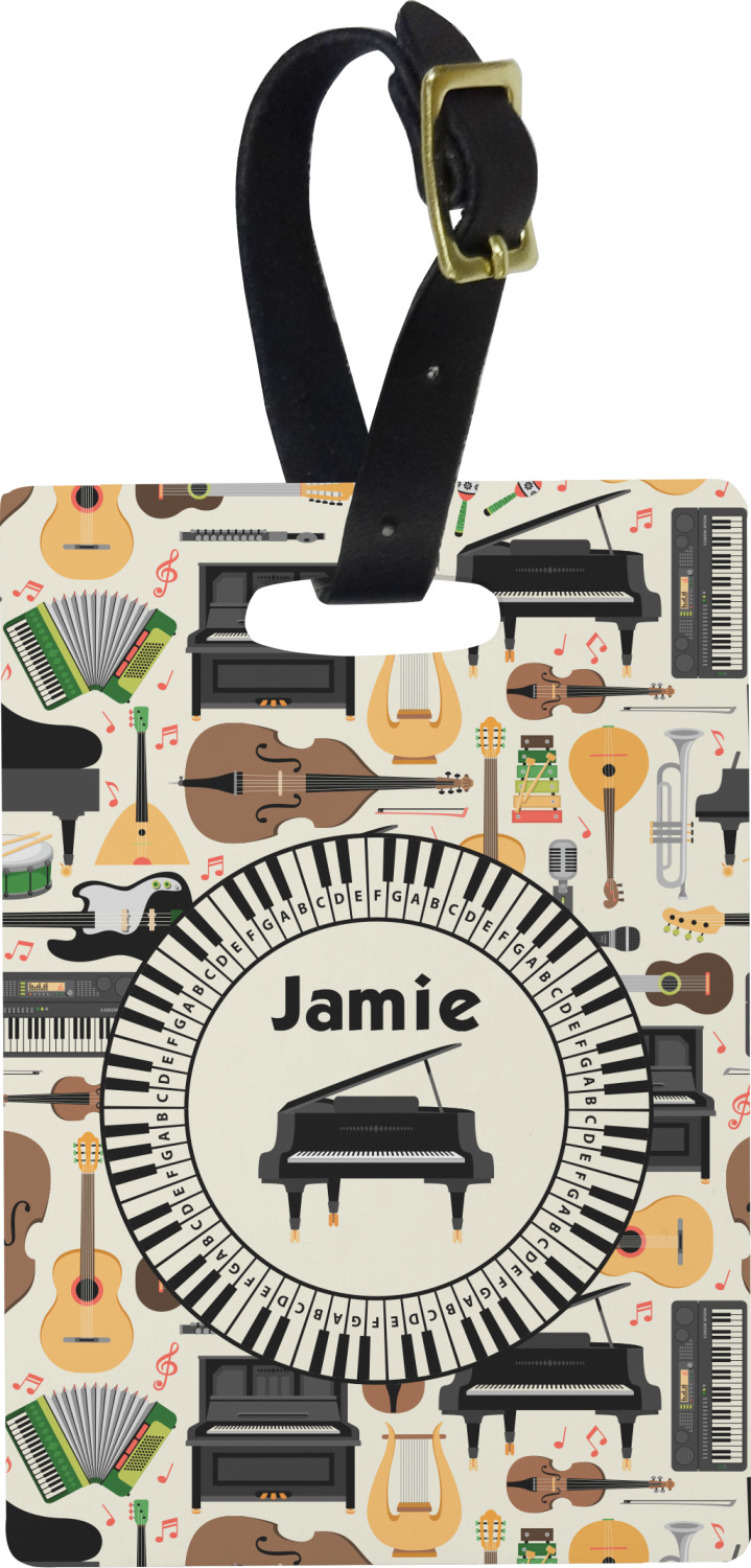 These personalized bag tags are sold in a variety of shapes, so that you may find the product that meets your vision exactly. We sell a round luggage tag, which measures at approximately 4" x 4". Our square luggage tag is about 3.5" x 3.5", while our rectangular version is 2.75" x 4 ".