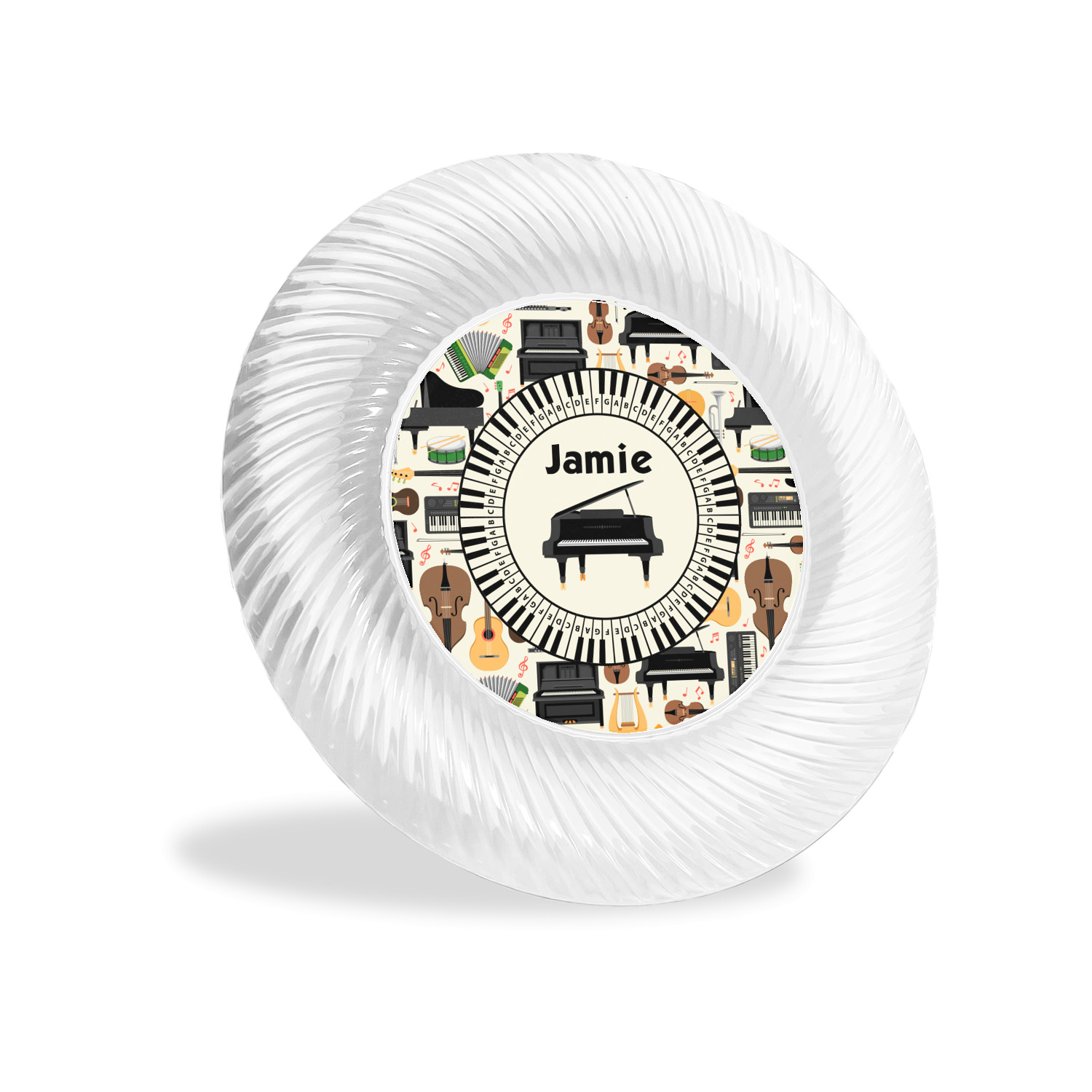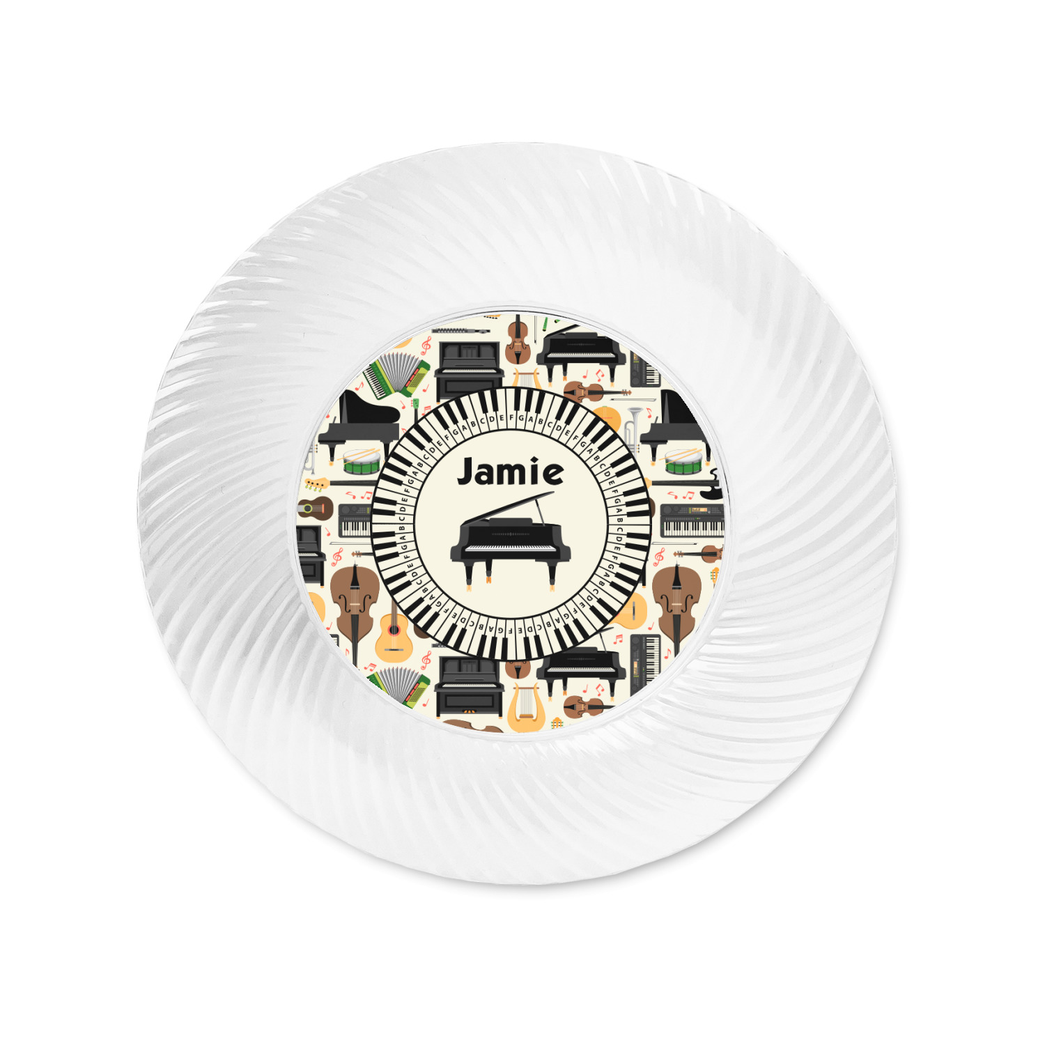 Made from a beautiful clear plastic plate as a base, your design is printed to the underside of the plate. The outside of the plate has a classic swirl texture to it for a high quality look and feel.