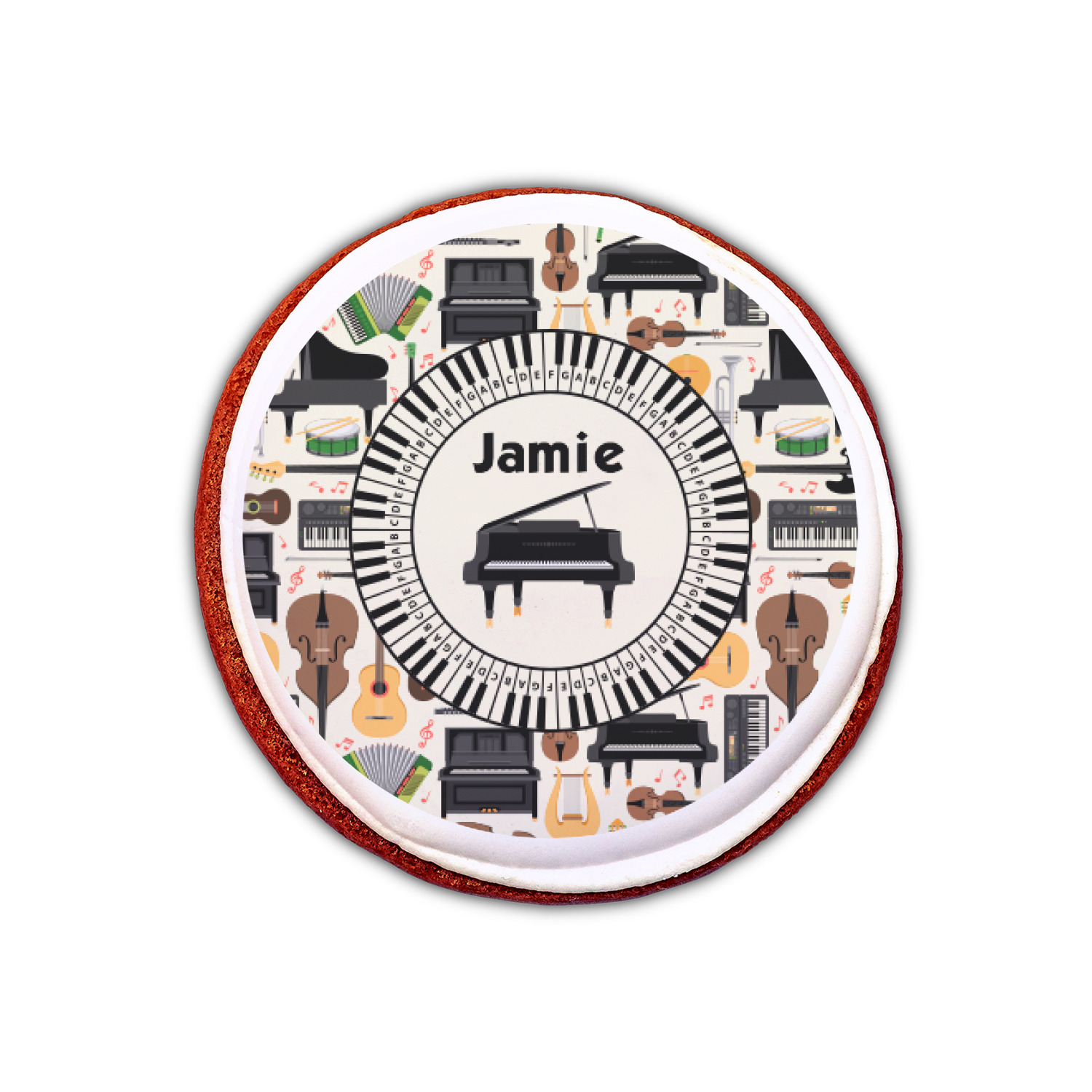 The background in the design is part of a set of music backgrounds - so it can easily be swapped out for a different background. We have a number of other musical frames / labels that you can also choose from. For the center graphic, all the musical instruments are in our system, so you can easily switch out the instrument.