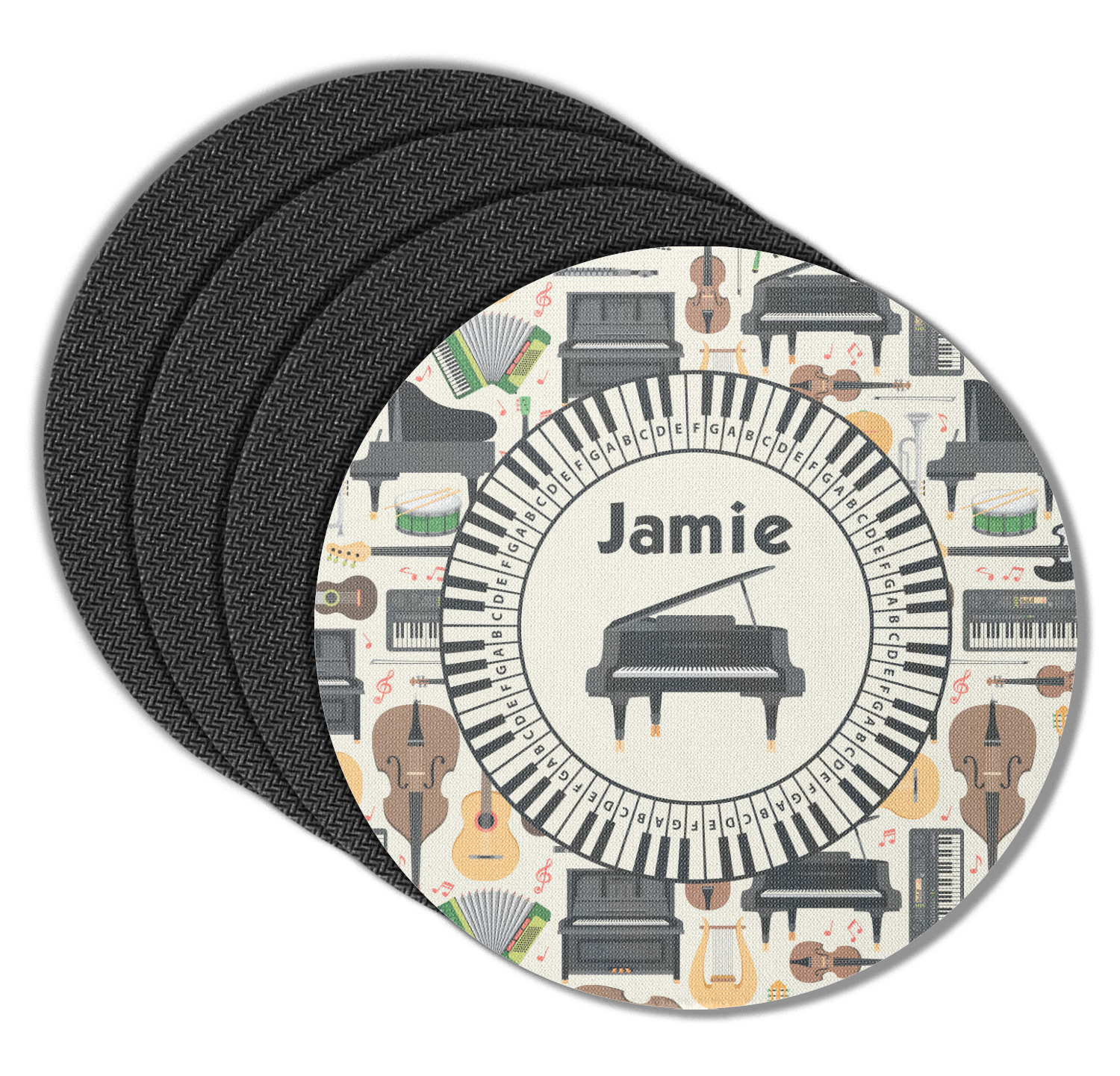These drink coasters have a smooth, polyester top and a textured, rubber backing on its bottom. The non-slip rubber backing underneath works to keep any spills at bay. At 4 by 4 by 0.25 inches thick, these custom coasters are a suitable size for most drinkware. Your personalization is displayed atop the face of the cup coaster. We sell these rubber coasters in two different shapes: square and round. You can buy each shape as singulars or as a set of 4.