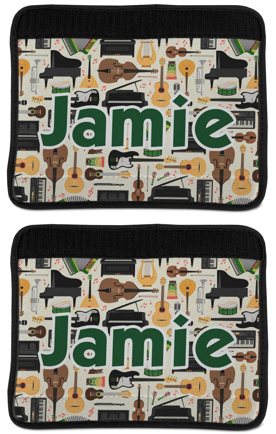 Made from neoprene, our seat belt strap covers wrap around the belt itself and have a Velcro tab for easy attachment and closure. The belt's edges are trimmed with a black polyester for a secure finish. Each cover is 9.5 by 7 inches when open and 9.5 by 2.5 inches when closed. We print your personalized design on the face of the seat belt pad.