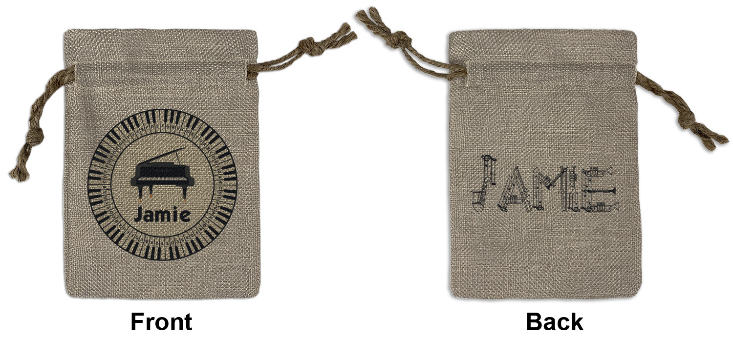 We sell our Burlap Gift Bags in 3 variant sized bags. Made with burlap polyester, each personalized bag can be secured with a twine drawstring pull. Your custom design is available to print on one side or both sides - completely up to you! The sizes of the bags measure approximately 4.5" x 6.5" for the smallest size, 6.5" x 8.0" for the medium size, and 6.5" x 13.5" for the large-sized bag.