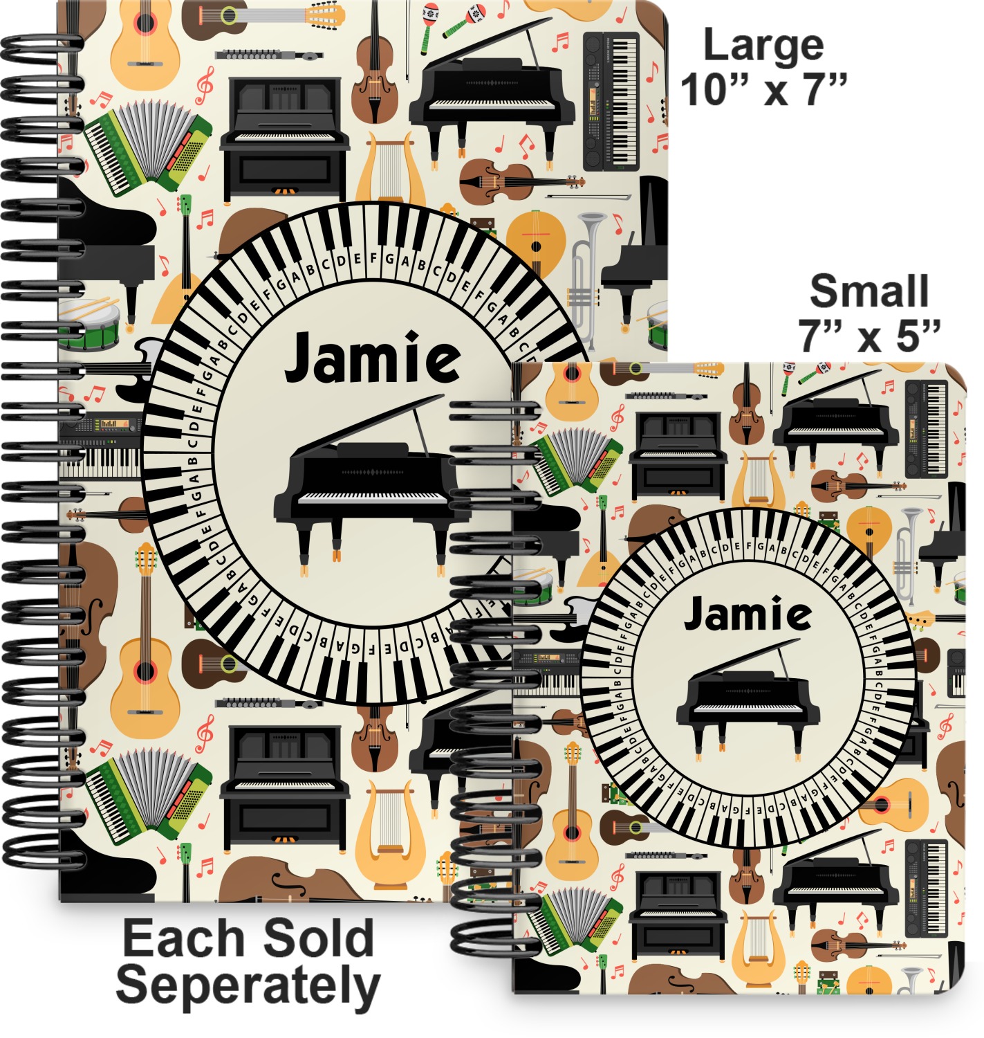 This spiral notebook includes 75 sheets of thick, ruled paper. The front and back of this custom notebook is made of a robust, laminate, plastic covering. We print your personalization on these two panels, underneath a glossy finish, which emphasizes the colors of your design. The two panels and the sheets of paper are held together by a sturdy, black coil. The paper within your bound notebook is perforated for easy, clean tearing.