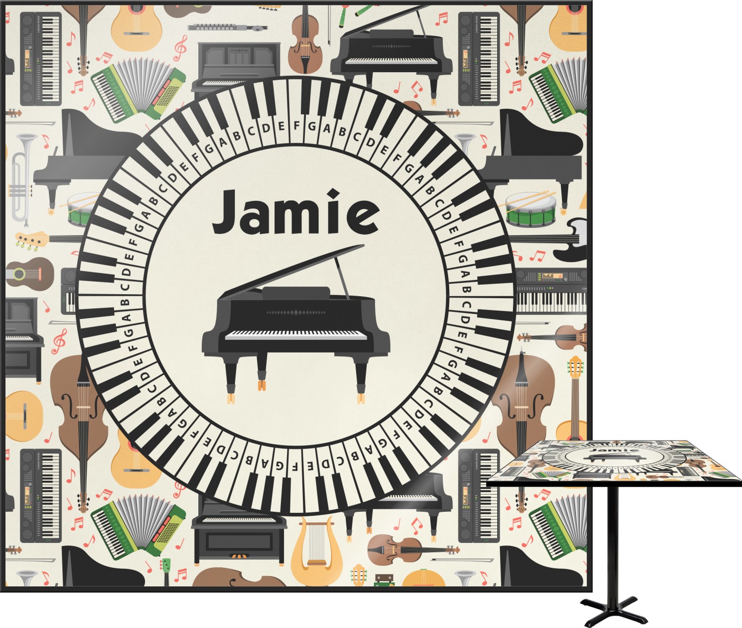 The background in the design is part of a set of music backgrounds - so it can easily be swapped out for a different background. We have a number of other musical frames / labels that you can also choose from. For the center graphic, all the musical instruments are in our system, so you can easily switch out the instrument.
