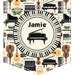 This musical instruments design is very elegant. The background is comprised of musical instrument and musical notes. Some of the musical instruments include pianos, guitars, harps, keyboard, flutes etc. We used our classic frame / label with graphic & name for our foreground. We chose a fun musical keys frame/label and for our graphic we chose the baby grand piano. We personalized it the a name using our "Touch of Class" font.