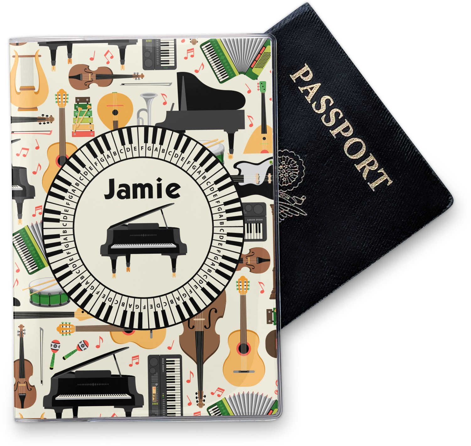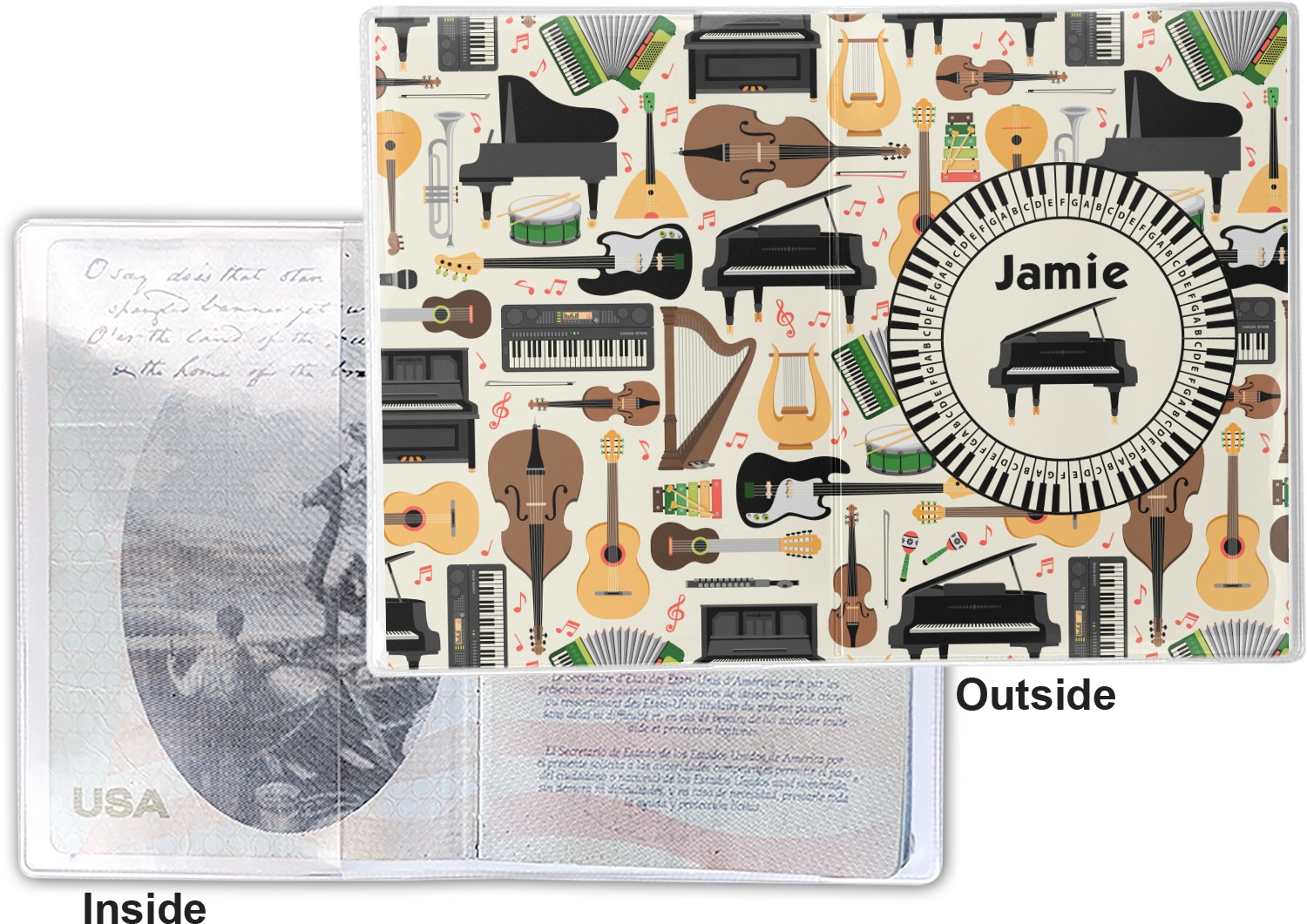 This cover is made of a sturdy clear vinyl with a personalized vinyl insert inside. There is a large and a small pocket on either side to hold the covers of your passport easily and firmly. The passport holder is approximately 7.5" x 5.25", the perfect size to snugly fit your passport. This slim cover is the perfect way to protect your passport without being one more bulky item you have to carry.