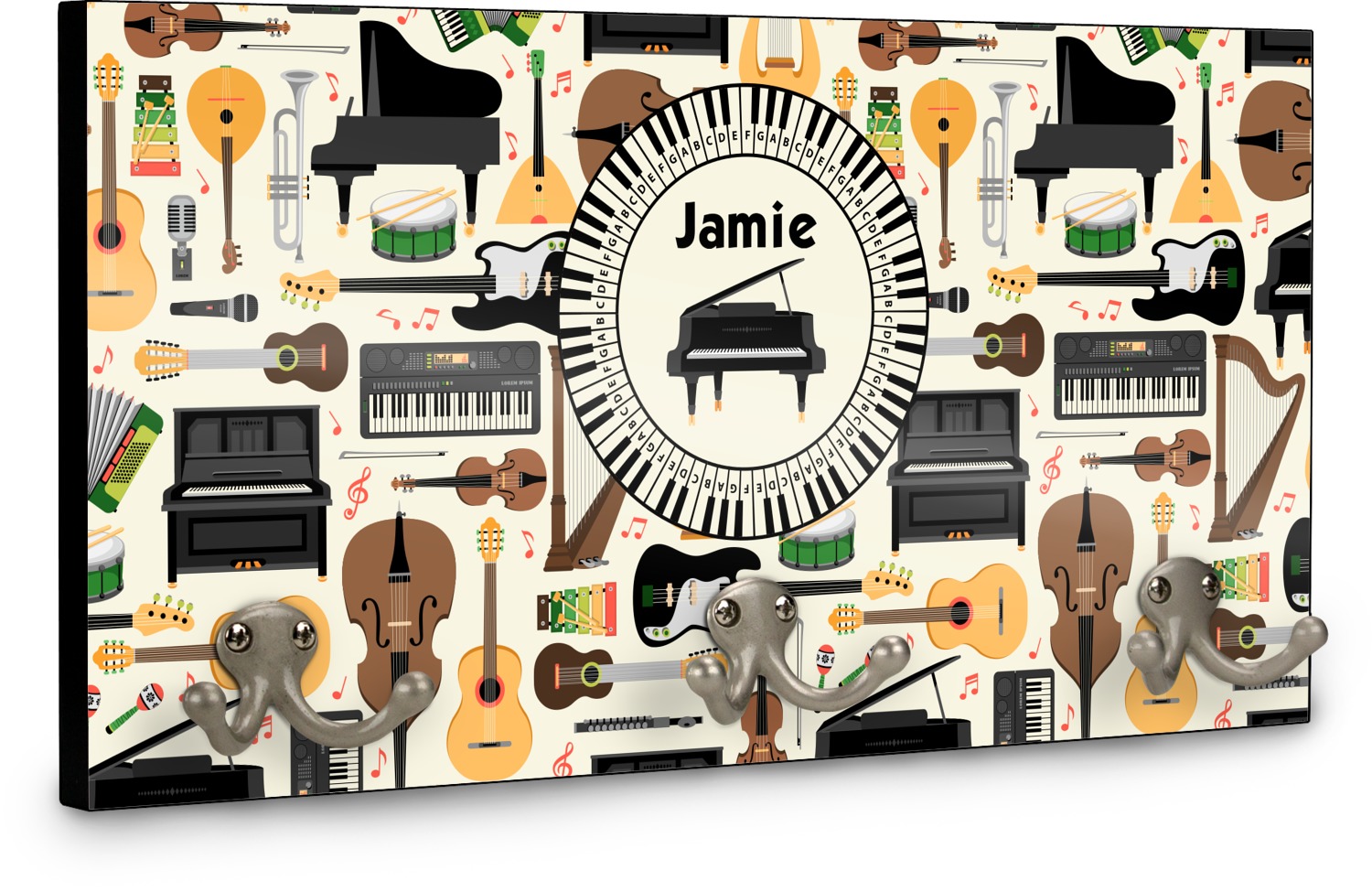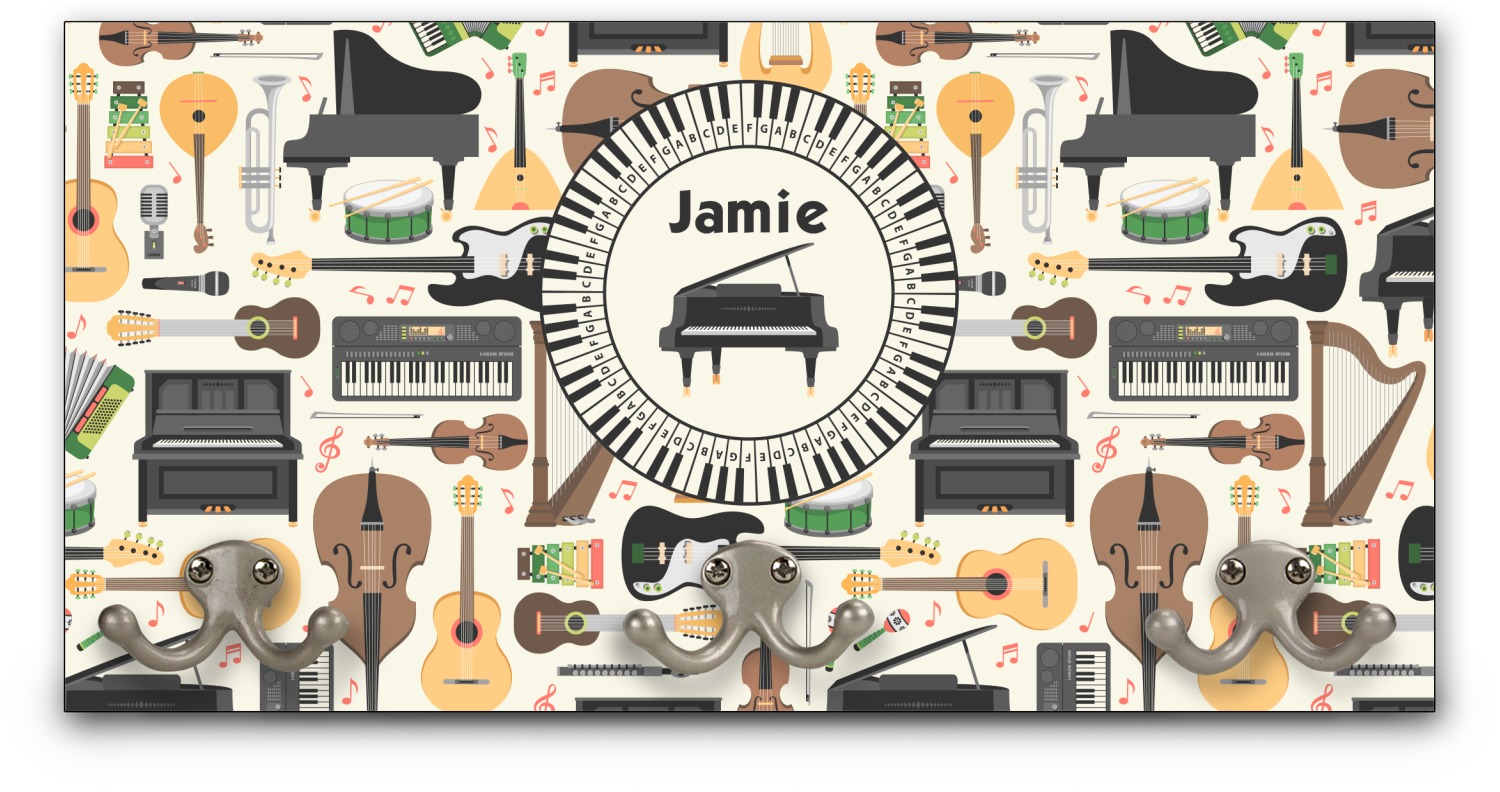 This coat rack is the perfect way to add some personality to your wall or entryway. The board is made of a strong maple that is approximately 16" x 8". The three 2-prong hooks are a sturdy metal that have three screws attaching them to the board. Your design is printed right onto the front of the board while the back and sides are a simple black.
