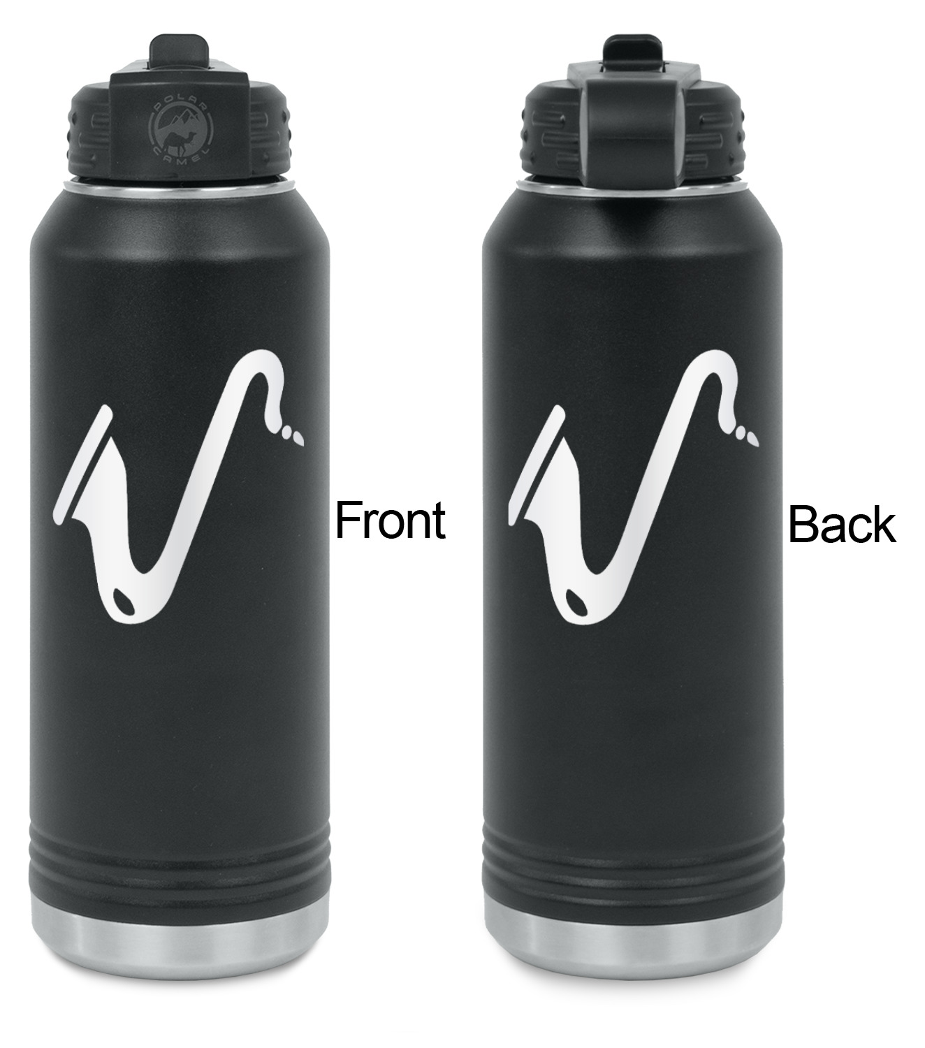 These 32 oz. water bottles are constructed from 18/8 durable food grade stainless steel. The inside of the water bottle is silver; while the outside is powder coated black