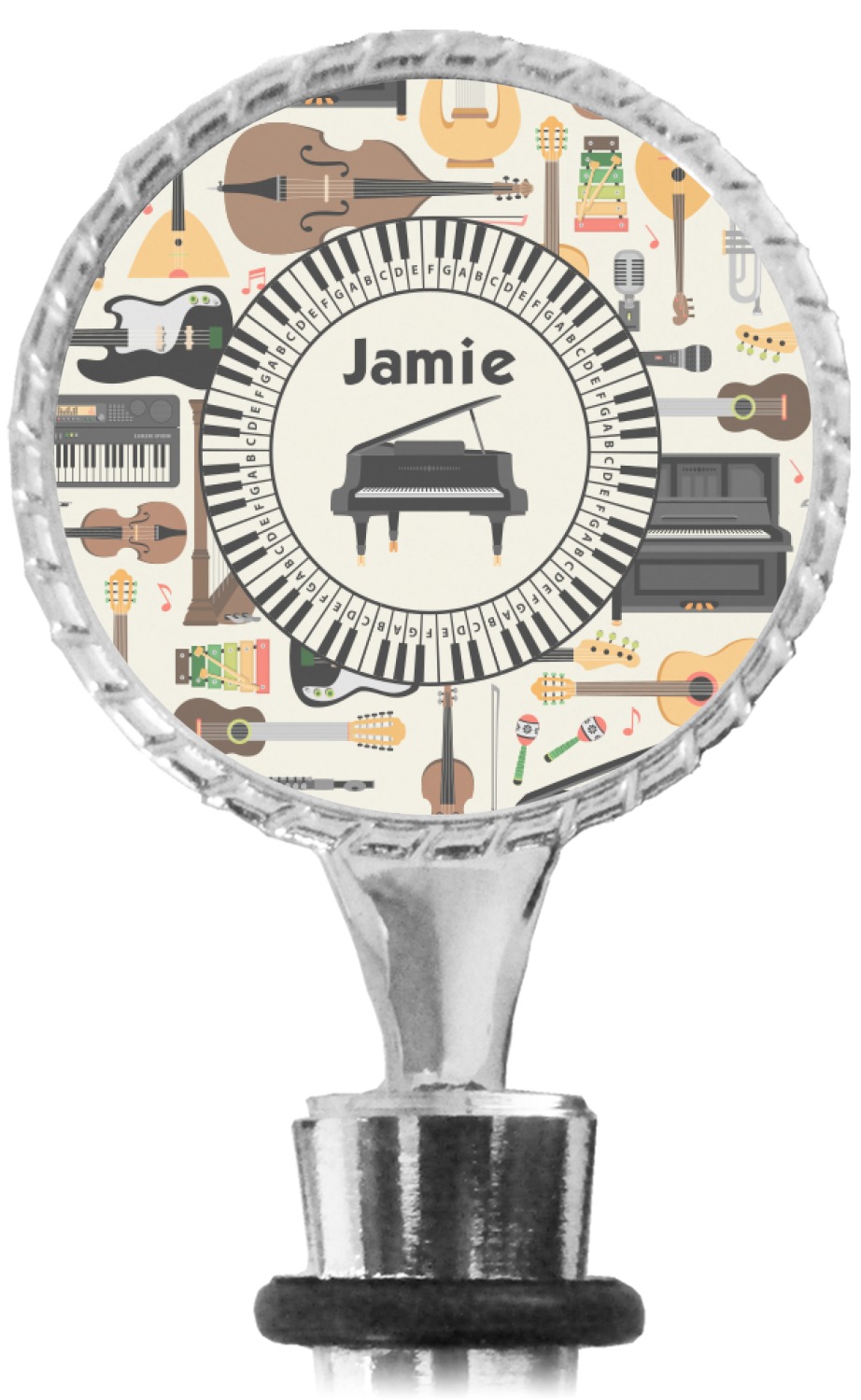 The top part of your bottle stopper is comprised of a zinc ring that displays your customization(s) in its middle, on both sides. The ring is heavy duty, with a bright chrome finish. The body of the wine stoppers have two silicone rings to provide an airtight seal. These wine bottle stoppers measure at 1.625" L x 0.8125" W x 4.625" H; your custom wine stopper is meant to fit into most standard-sized wine bottles.