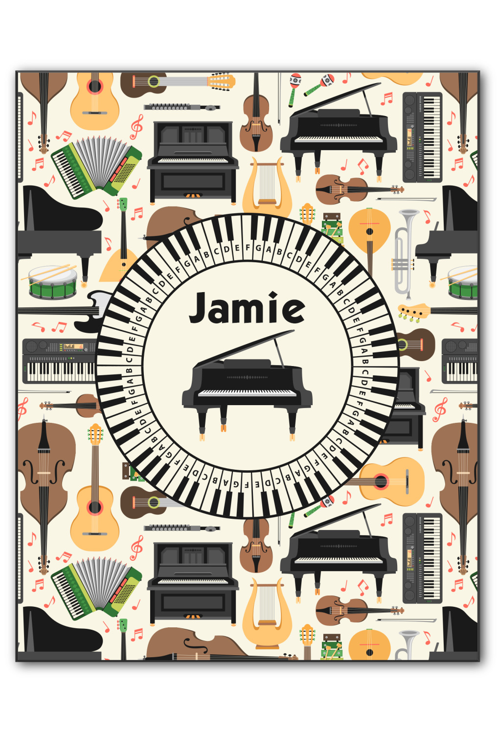 This musical instruments design is very elegant. The background is comprised of musical instrument and musical notes. Some of the musical instruments include pianos, guitars, harps, keyboard, flutes etc. We used our classic frame / label with graphic & name for our foreground. We chose a fun musical keys frame/label and for our graphic we chose the baby grand piano. We personalized it the a name using our "Touch of Class" font.