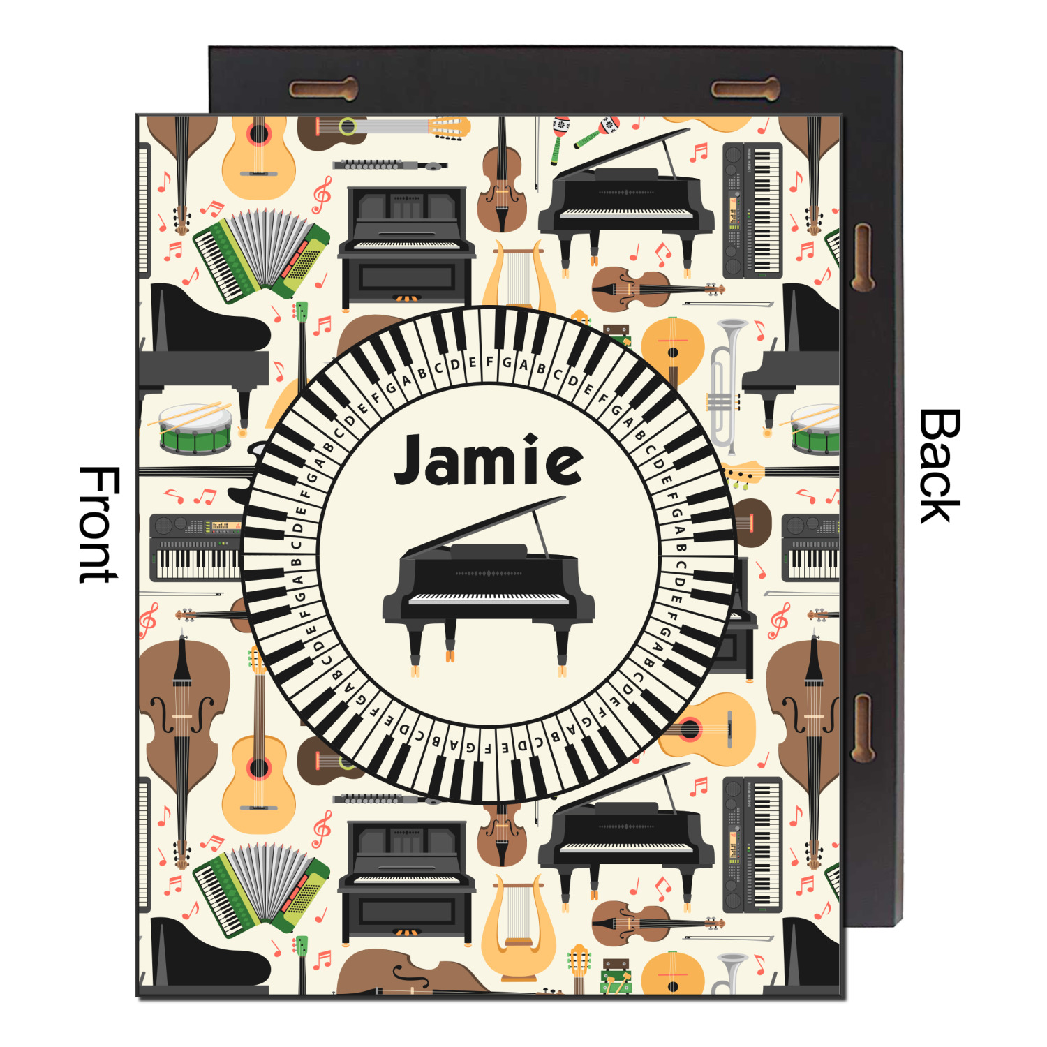 This musical instruments design is very elegant. The background is comprised of musical instrument and musical notes. Some of the musical instruments include pianos, guitars, harps, keyboard, flutes etc. We used our classic frame / label with graphic & name for our foreground. We chose a fun musical keys frame/label and for our graphic we chose the baby grand piano. We personalized it the a name using our "Touch of Class" font.