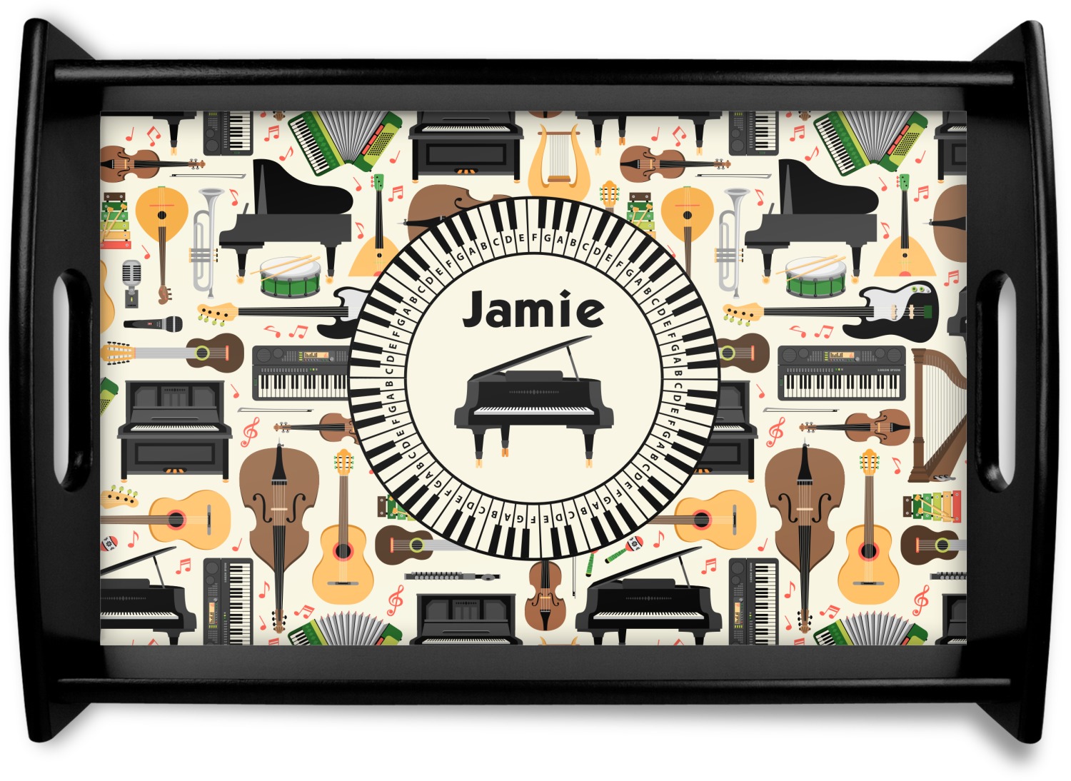 The background in the design is part of a set of music backgrounds - so it can easily be swapped out for a different background. We have a number of other musical frames / labels that you can also choose from. For the center graphic, all the musical instruments are in our system, so you can easily switch out the instrument.