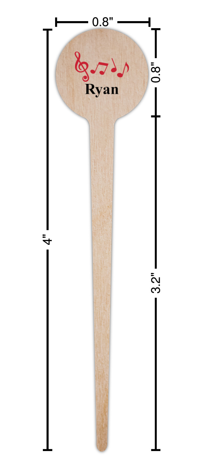 Musical Notes Designs for 4" Round Wooden Food Picks - Single-Sided