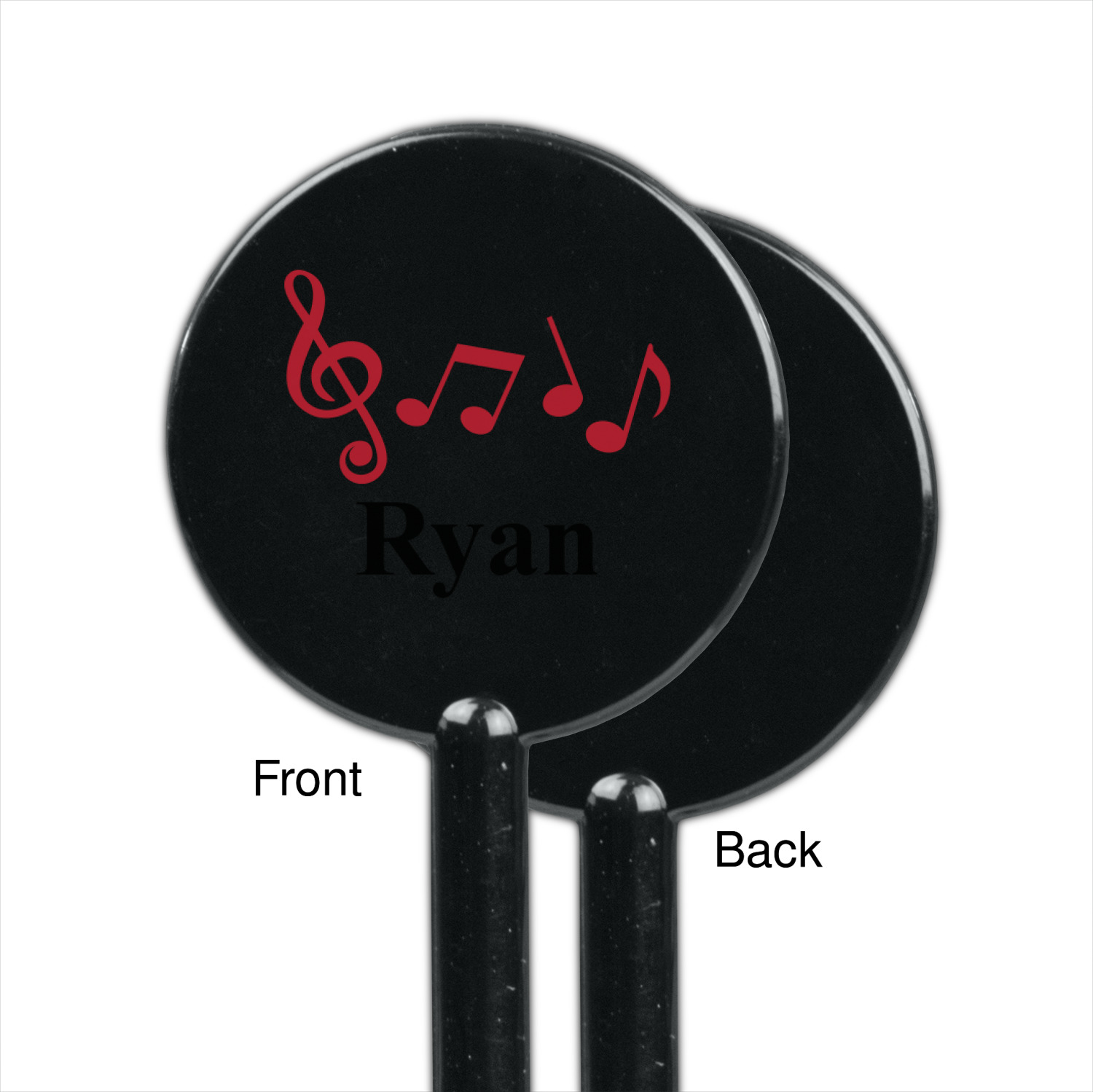 Musical Notes Designs for 5.5" Round Plastic Stir Sticks - Black - Single-Sided