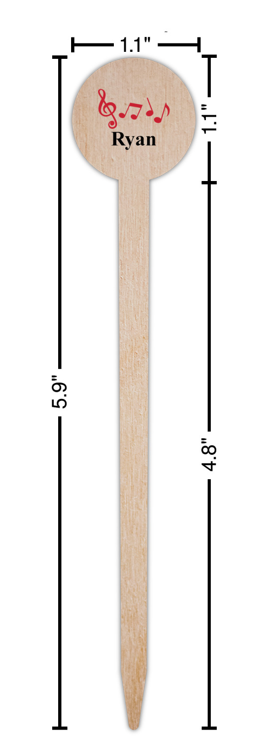 Musical Notes Designs for 6" Round Wooden Food Picks - Double-Sided