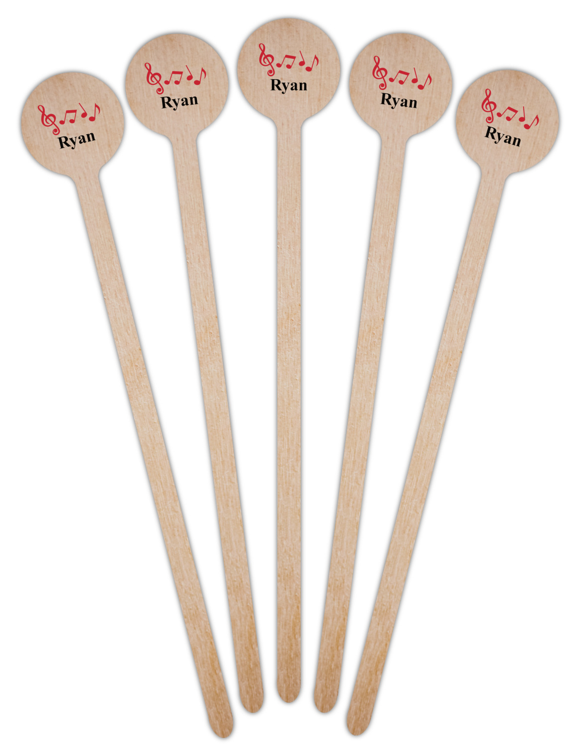 Musical Notes Designs for 7.5" Round Wooden Stir Sticks - Single-Sided