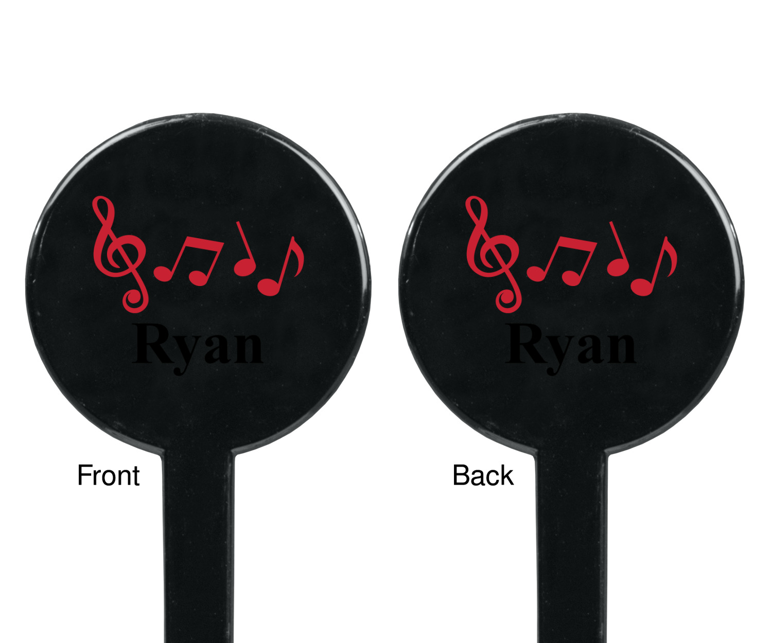Musical Notes Designs for 7" Round Plastic Stir Sticks - Black - Double-Sided