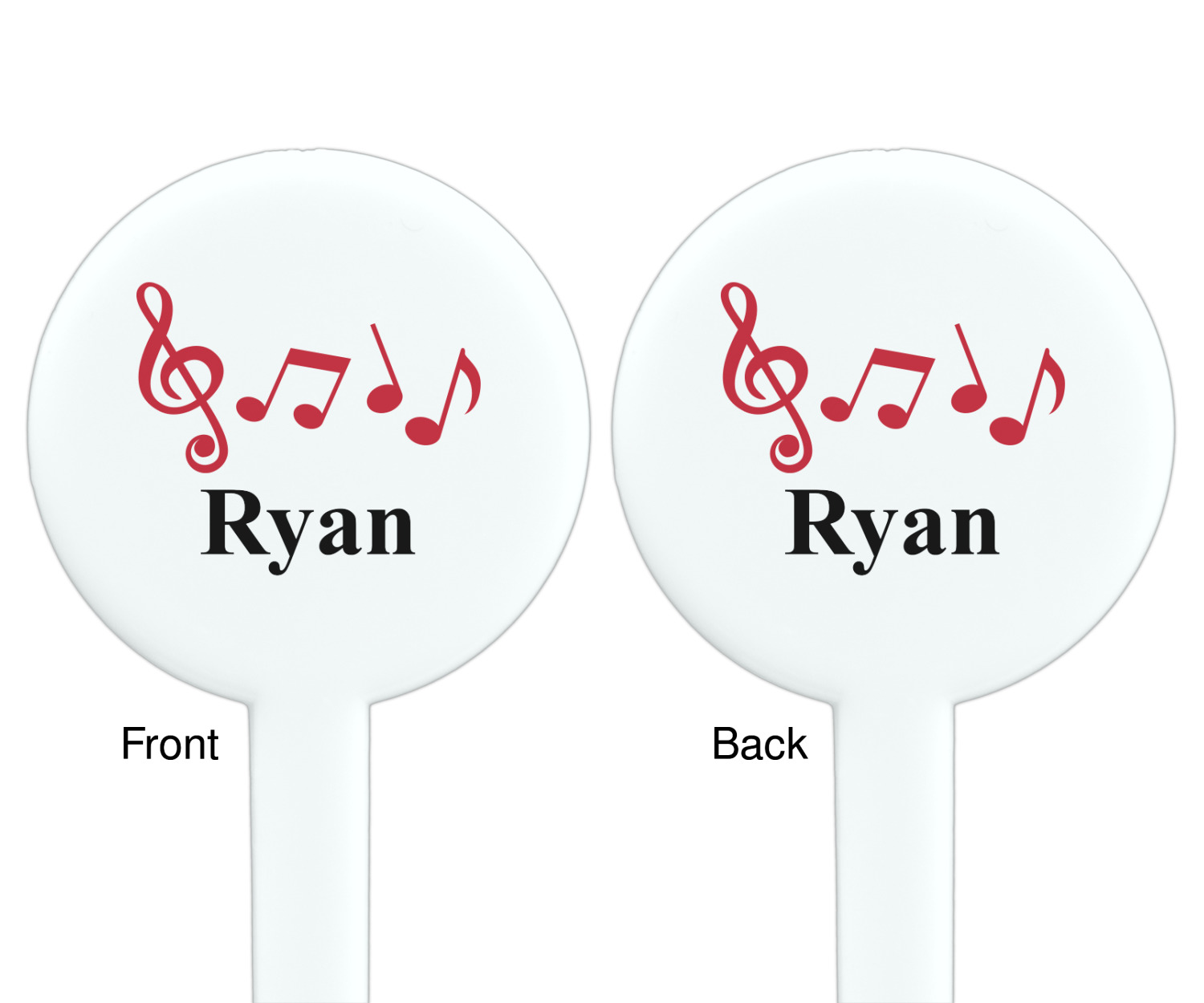 Musical Notes Designs for 7" Round Plastic Stir Sticks - White - Double-Sided