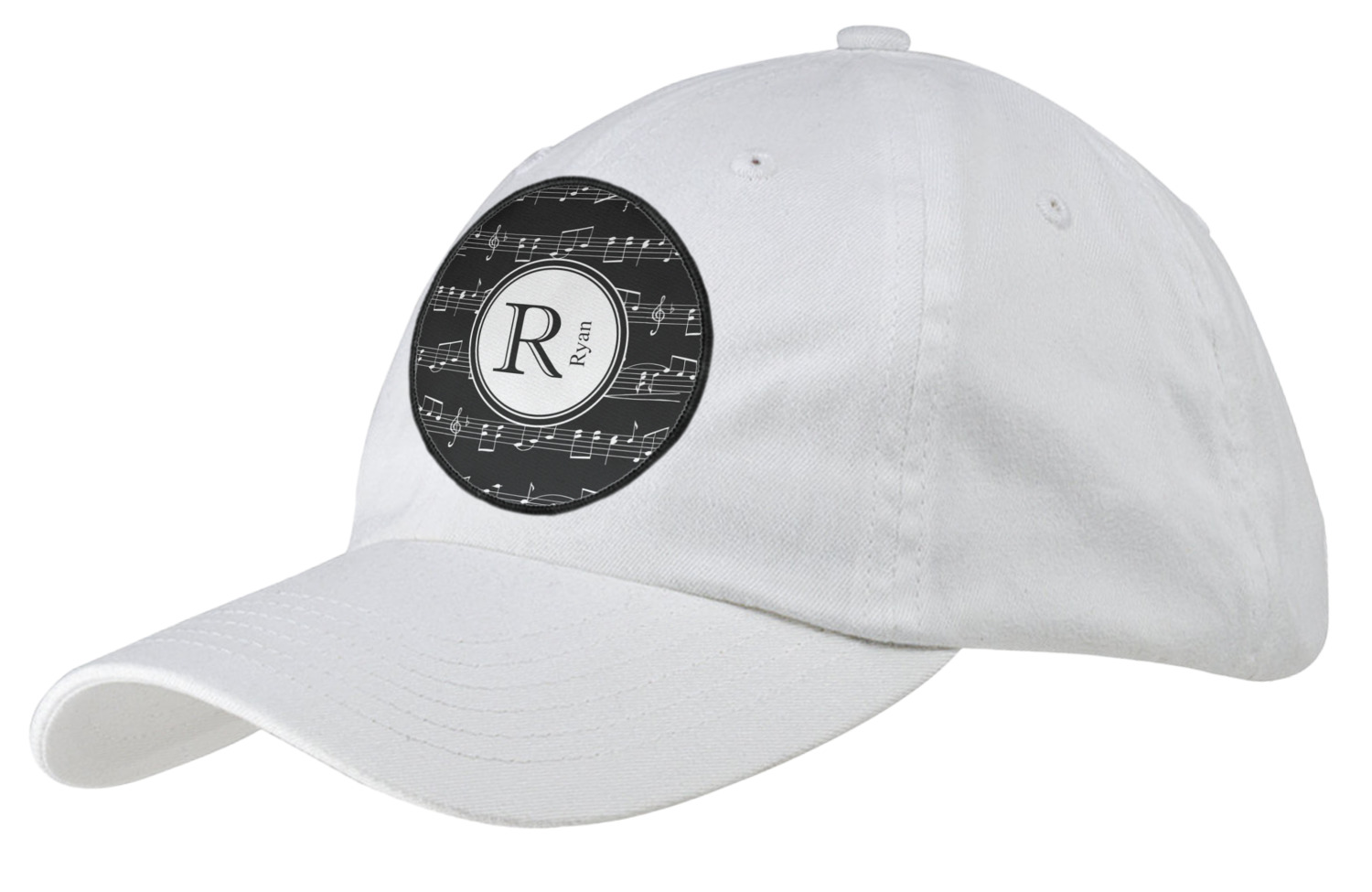 Music notes are set on a white background just like a sheet of music. A simple black outlined white label is placed in the middle of the design. Personalize with an initial and name of your choice.