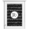 Music notes are set on a white background just like a sheet of music. A simple black outlined white label is placed in the middle of the design. Personalize with an initial and name of your choice.