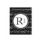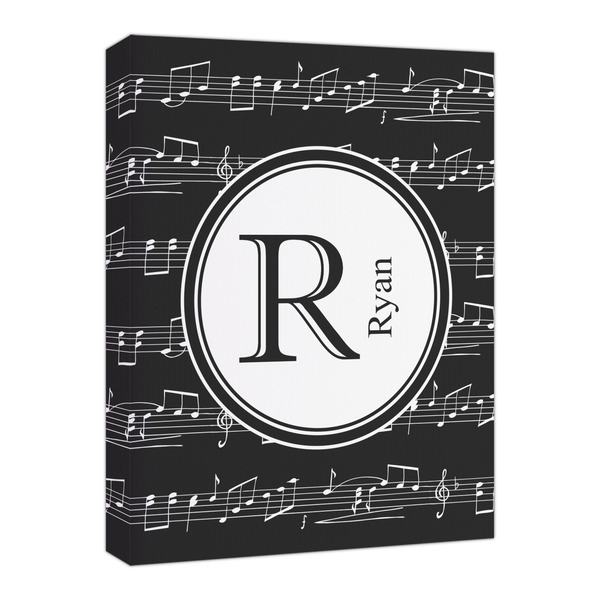Music notes are set on a white background just like a sheet of music. A simple black outlined white label is placed in the middle of the design. Personalize with an initial and name of your choice.