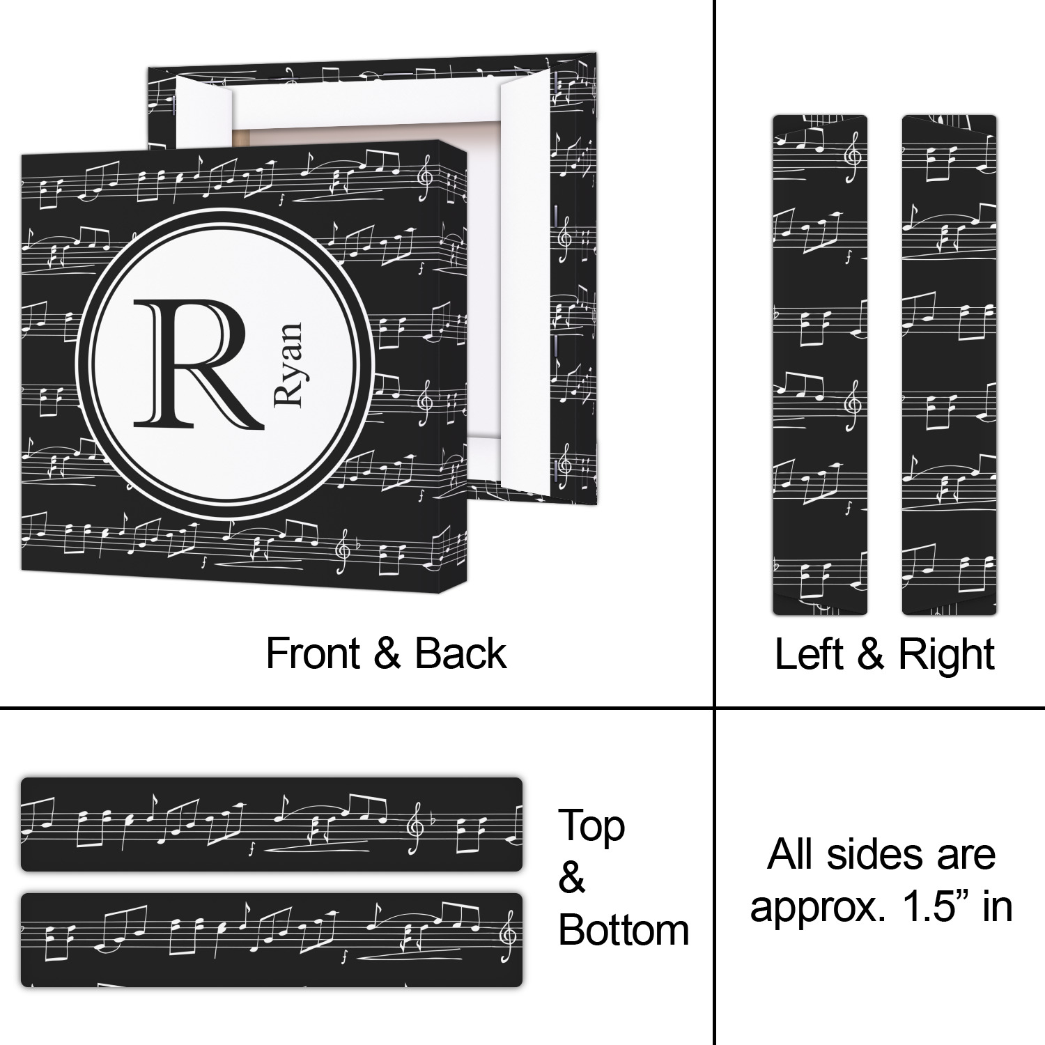 Music notes are set on a white background just like a sheet of music. A simple black outlined white label is placed in the middle of the design. Personalize with an initial and name of your choice.