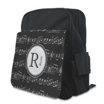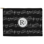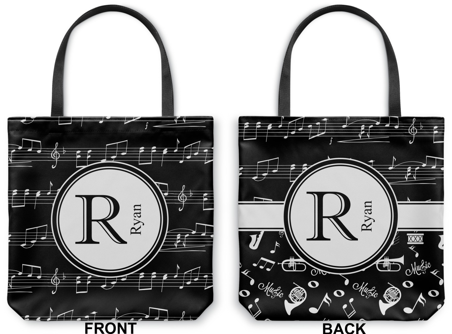 Music notes are set on a white background just like a sheet of music. A simple black outlined white label is placed in the middle of the design. Personalize with an initial and name of your choice.