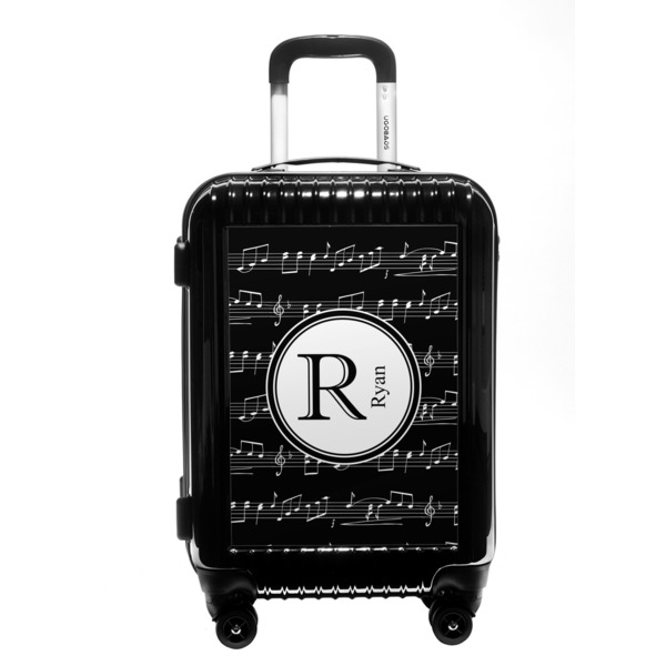 Music notes are set on a white background just like a sheet of music. A simple black outlined white label is placed in the middle of the design. Personalize with an initial and name of your choice.