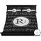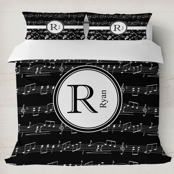 Music notes are set on a white background just like a sheet of music. A simple black outlined white label is placed in the middle of the design. Personalize with an initial and name of your choice.