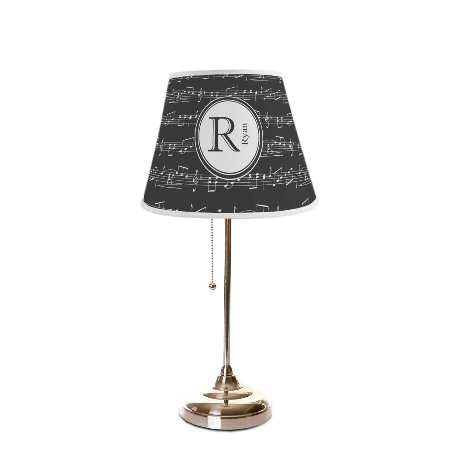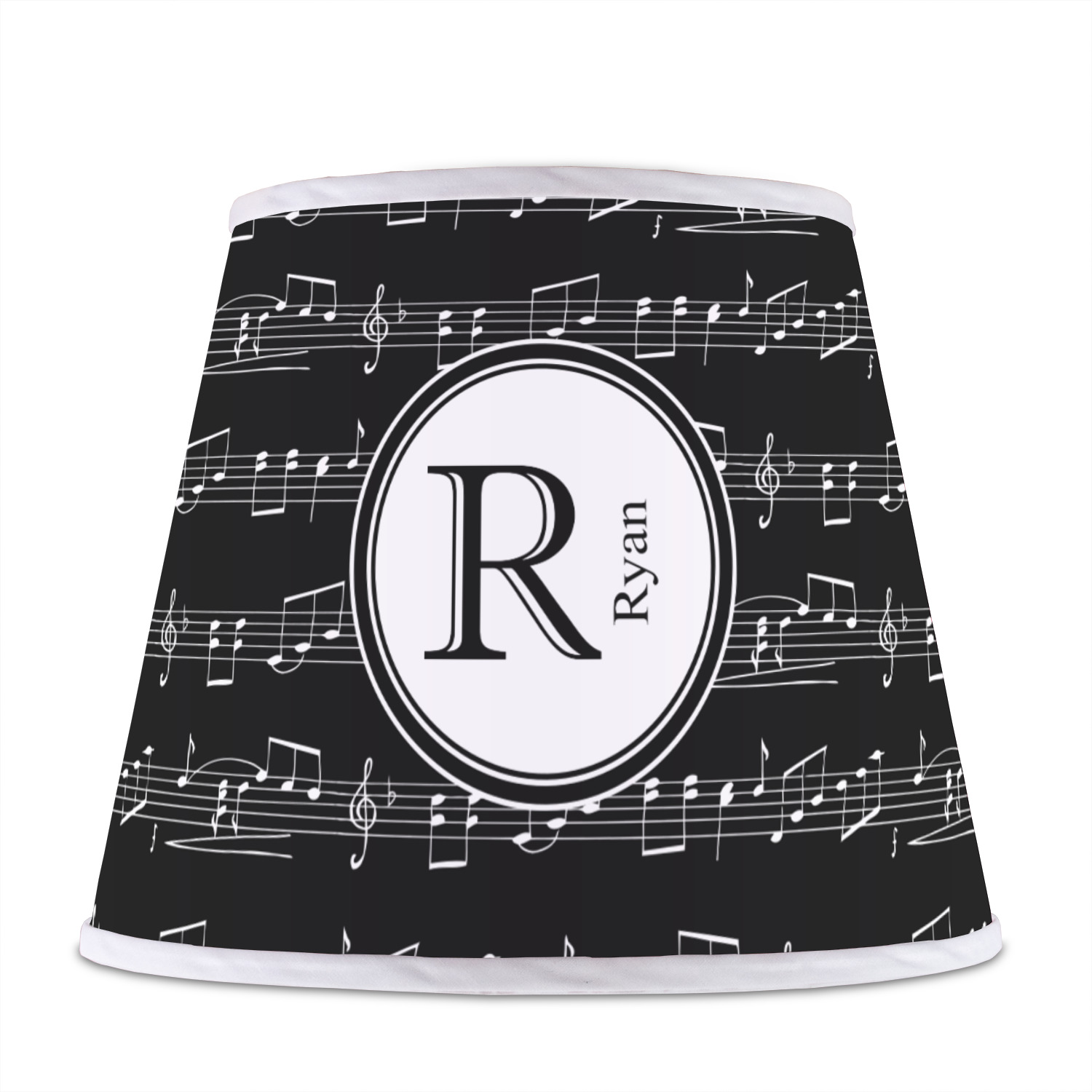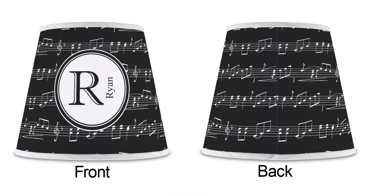 Music notes are set on a white background just like a sheet of music. A simple black outlined white label is placed in the middle of the design. Personalize with an initial and name of your choice.