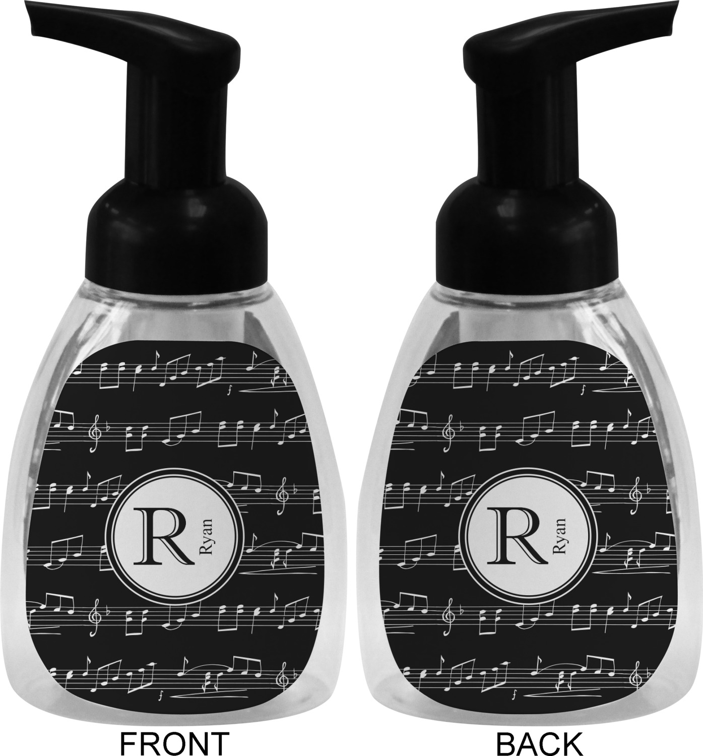 This soap dispenser is made of a robust plastic and has a clear base. The included soap pump is available in black or white color. This dispenser is 6.5 inches tall, 3 inches wide, and 2 inches deep. We display your customized designs on the front and back sides of these foaming hand soap dispensers.