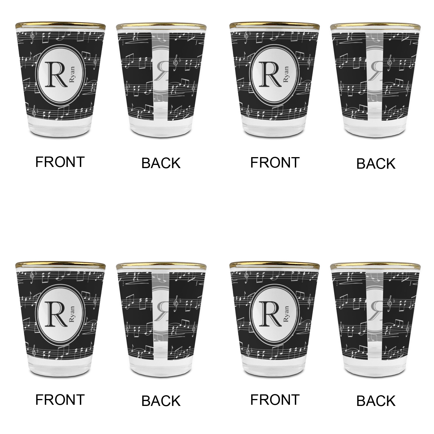 Musical Notes Designs for Glass Shot Glasses - 1.5 oz - with Gold Rim - Set of 4