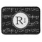Music notes are set on a white background just like a sheet of music. A simple black outlined white label is placed in the middle of the design. Personalize with an initial and name of your choice.