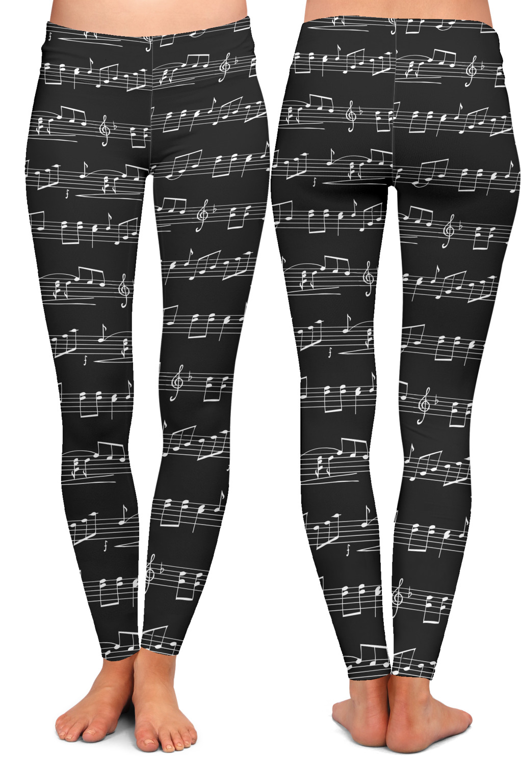 These leggings are fabulous with some crazy patterns. They are a breathable poly-spandex material (88% polyester and 12% spandex), so they give the possibility to wear them for running or fashion. They have a tall waistband, which is approximately 3.5" - 4" (depending on your size). The tall band allows for wearing your leggings high or low. They are perfect for every occasion.