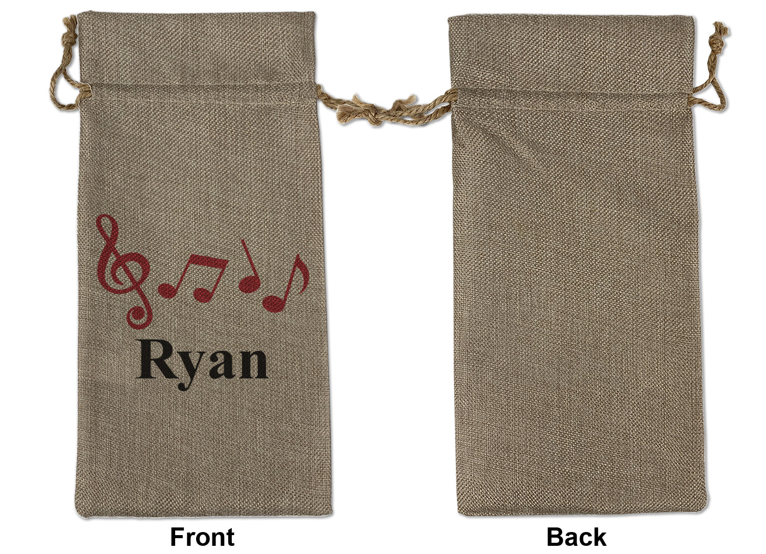 We sell our Burlap Gift Bags in 3 variant sized bags. Made with burlap polyester, each personalized bag can be secured with a twine drawstring pull. Your custom design is available to print on one side or both sides - completely up to you! The sizes of the bags measure approximately 4.5" x 6.5" for the smallest size, 6.5" x 8.0" for the medium size, and 6.5" x 13.5" for the large-sized bag.