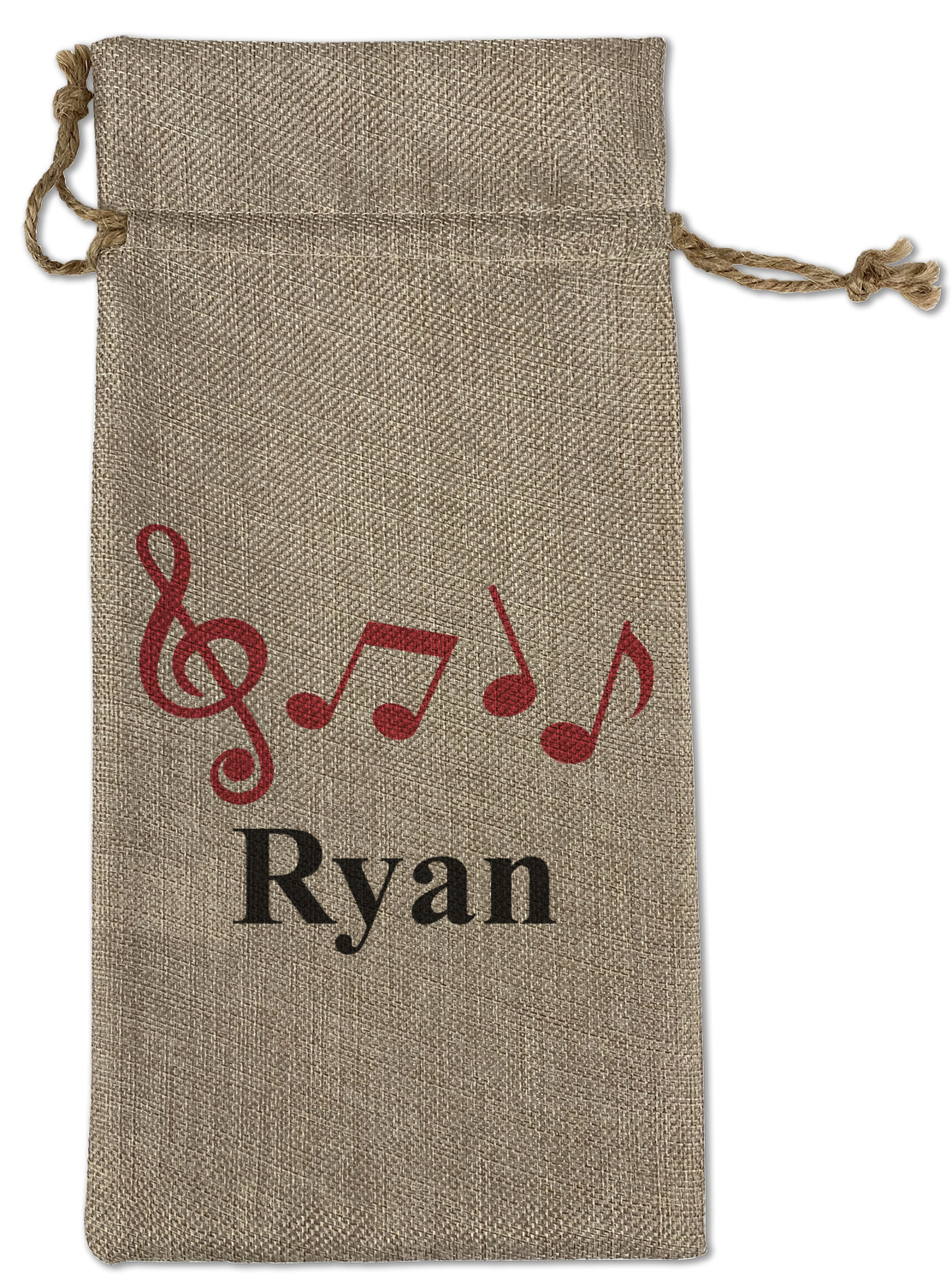 Music notes are set on a white background just like a sheet of music. A simple black outlined white label is placed in the middle of the design. Personalize with an initial and name of your choice.