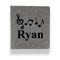 Music notes are set on a white background just like a sheet of music. A simple black outlined white label is placed in the middle of the design. Personalize with an initial and name of your choice.