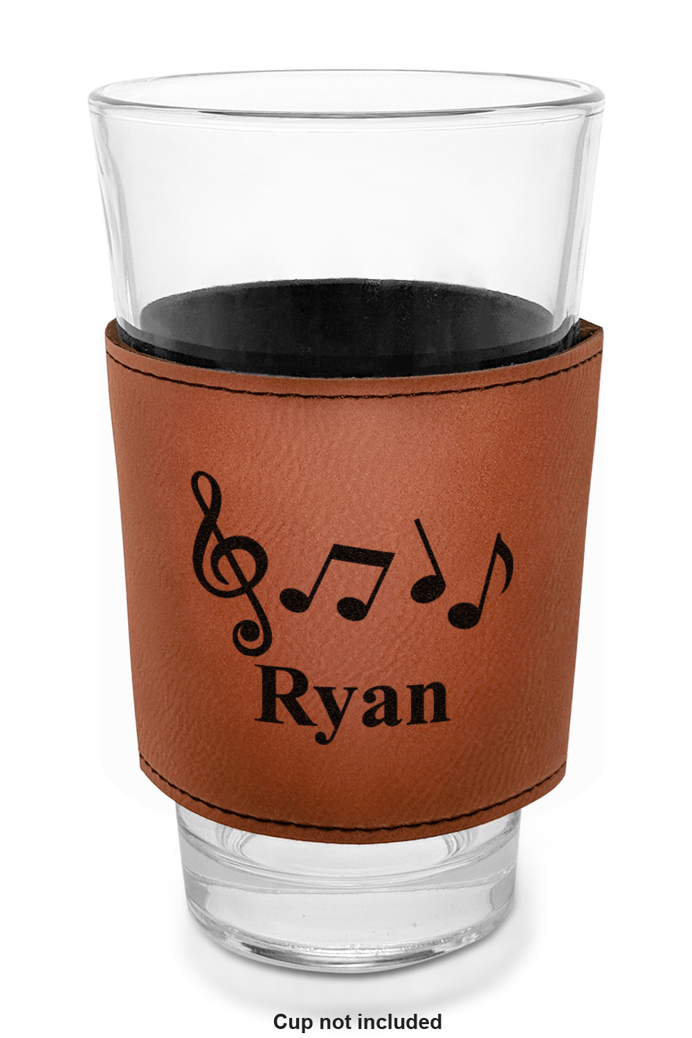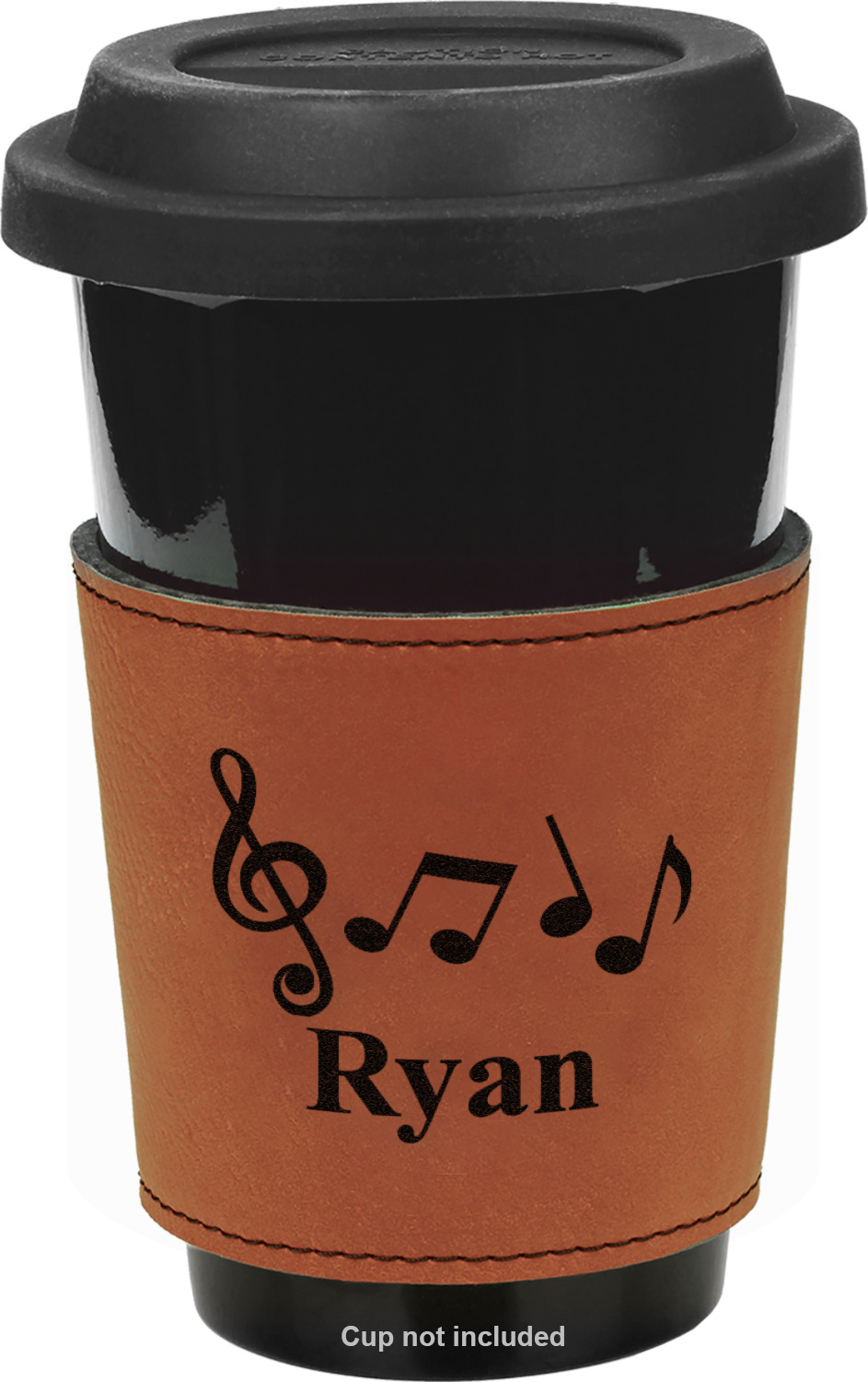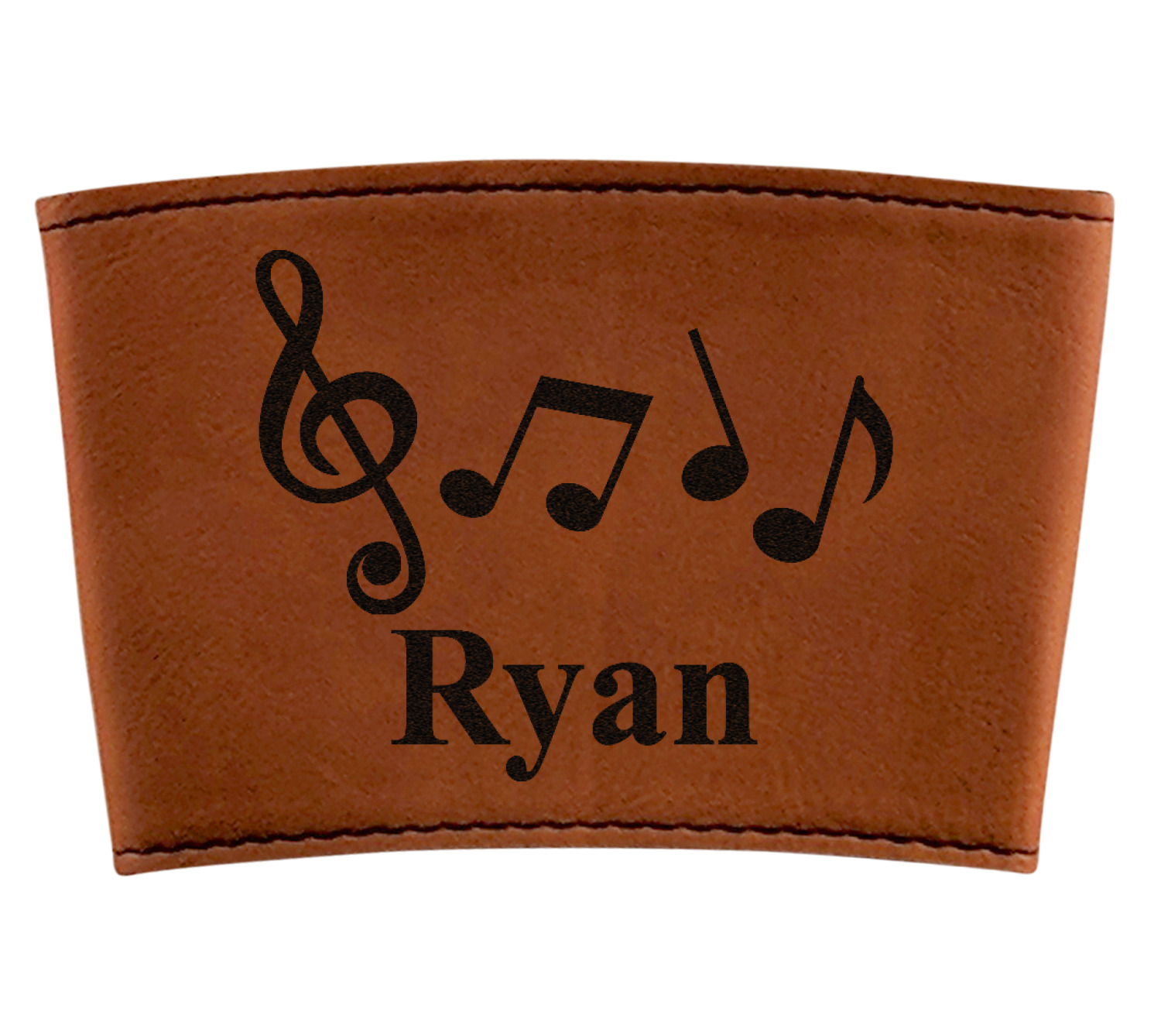 This cup sleeve is made from a suave, cognac-brown leatherette and finished with an intricate, black stitch. The interior of this can sleeve is fabricated from a thin foam material to help insulate your mug's contents. The sleeve is specifically made to suit tapered glasses or mugs, so the top's diameter is 3.5 inches, while the bottom's diameter is 2.75 inches. Your customized design will be laser engraved into the leatherette, leaving behind crisp, black imprint. With these products, we provide you with the option of engraving the front and back, or the front only.