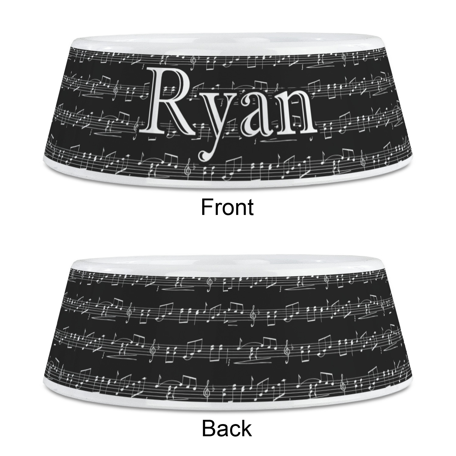 Music notes are set on a white background just like a sheet of music. A simple black outlined white label is placed in the middle of the design. Personalize with an initial and name of your choice.